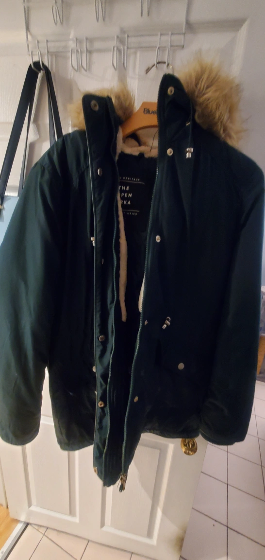 Dark green coat, size medium, comfy with an adjustable waist with fleece lining great for Canadian winter, selling because I nee coat and M doesn't fit me anymore. #winter #decluttering #women's