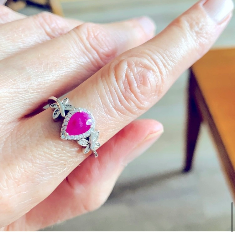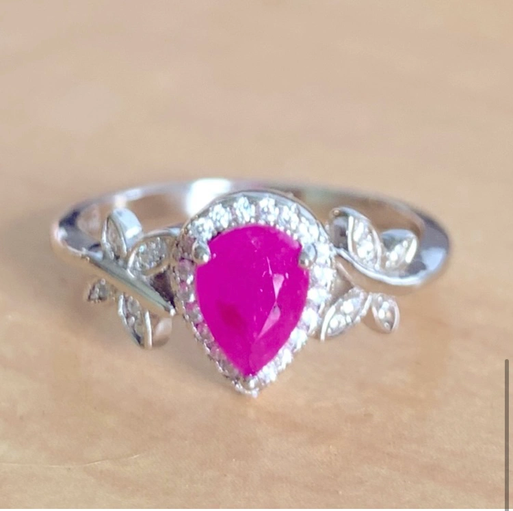 A gorgeous in pristine condition sterling silver ring with a Genuine authentic one carat, beautiful ruby stone. There are sparkling butterflies on either side and a sparkling halo around the authentic ruby.❤️🦋❤️. The ring is stamped sterling silver. total weight of 1 carat center RUBY is 2.61 grams. The surrounding sparkling stones are white crystal zirconia- there are 33 of them.🦋❤️❤️Prettiest Ruby Ever! ❤️🦋❤️