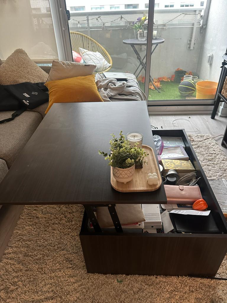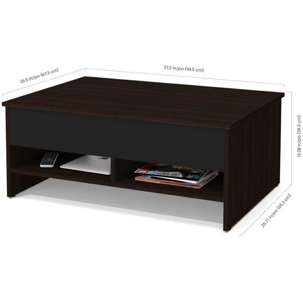 Lift-Top Table: The 2 open compartments are accessible on both sides of the table