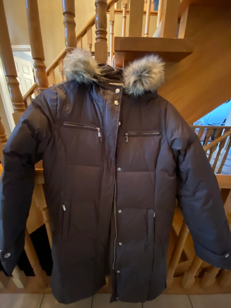 Almost new long winter puffer coat/parka with removable fur hood.