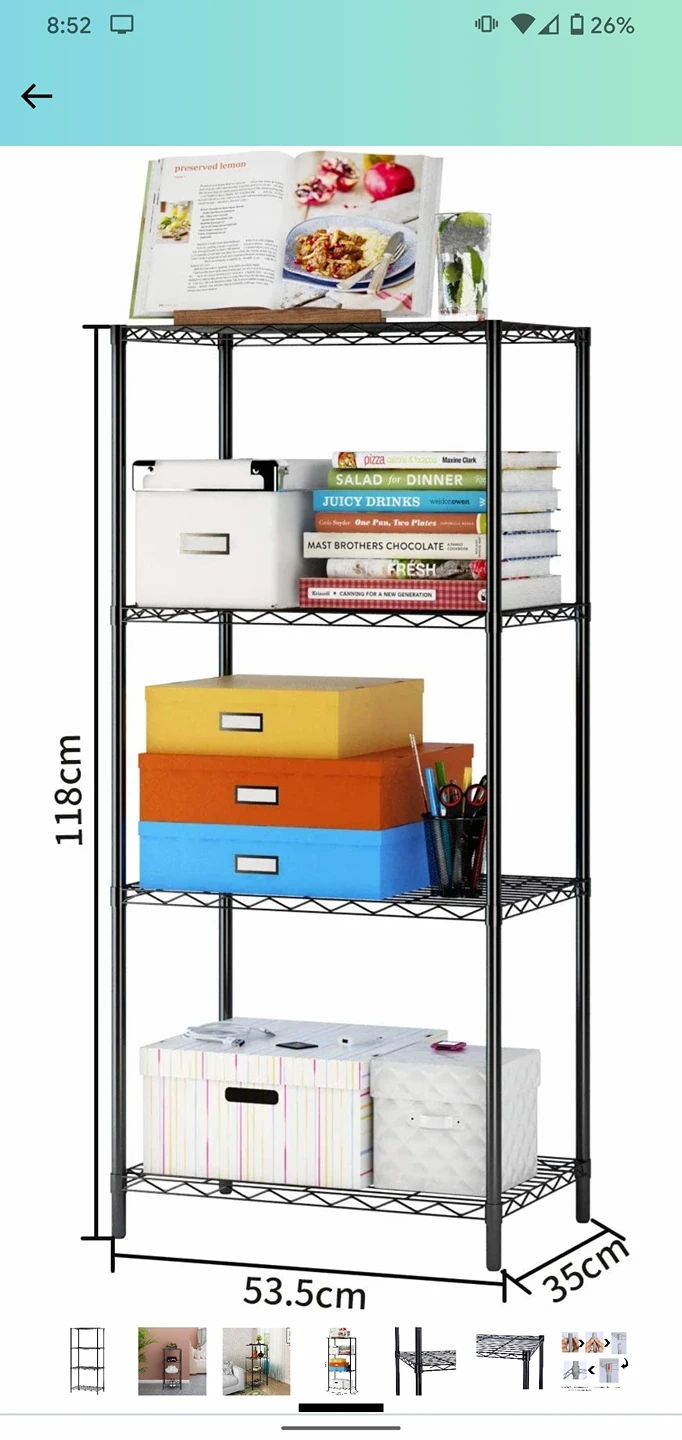 Wired shelving unit. Just purchased in December, selling because I'm moving. Measurements in pictures.