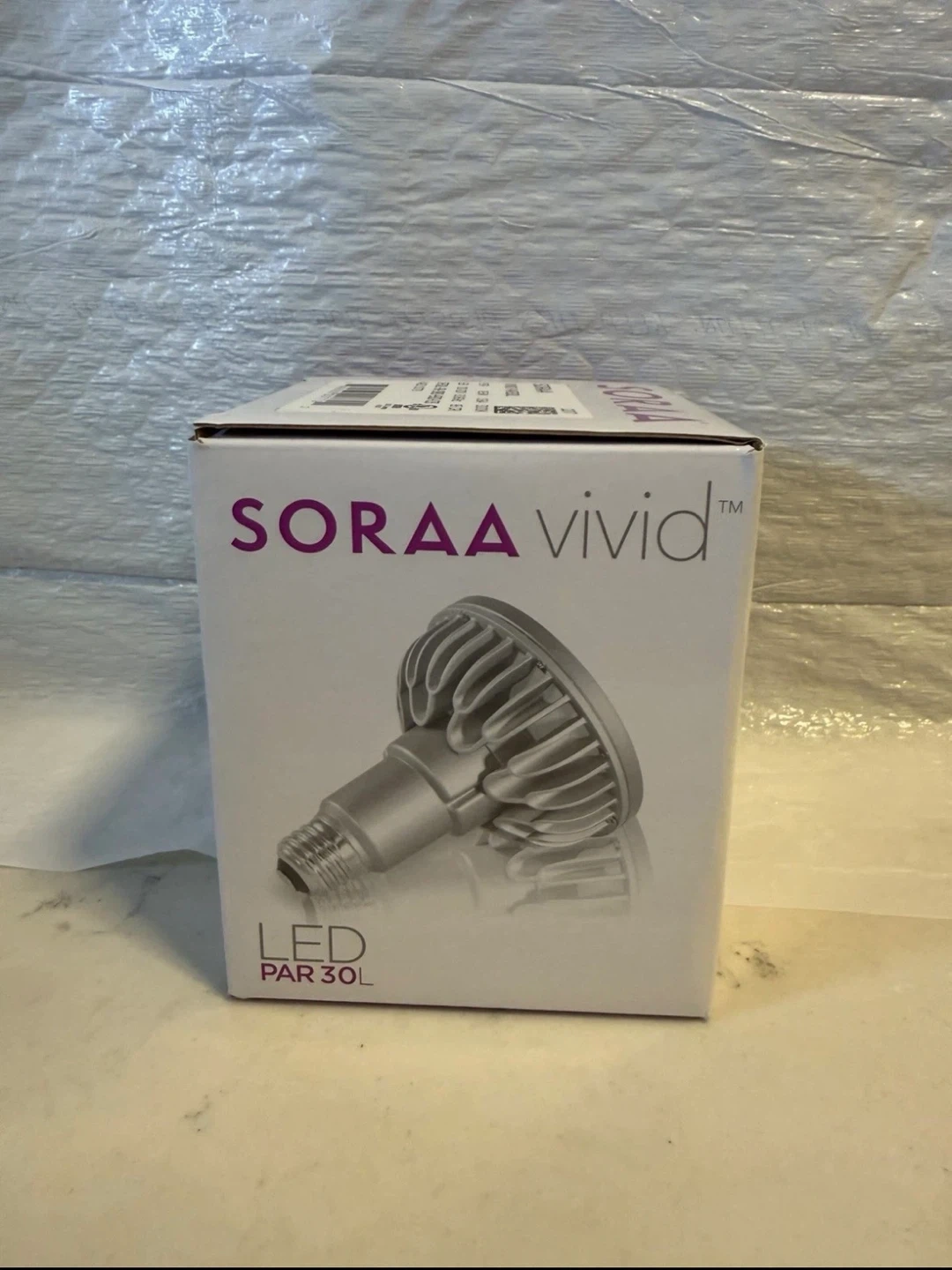 This is a Soraa Vivid LED PAR 30L light bulb. It's designed for superior light quality and energy efficiency. Includes original packaging.