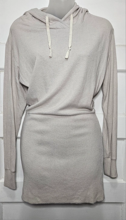 Express Cream Drop Shoulder Hooded Mini Sweater Dress Size XS