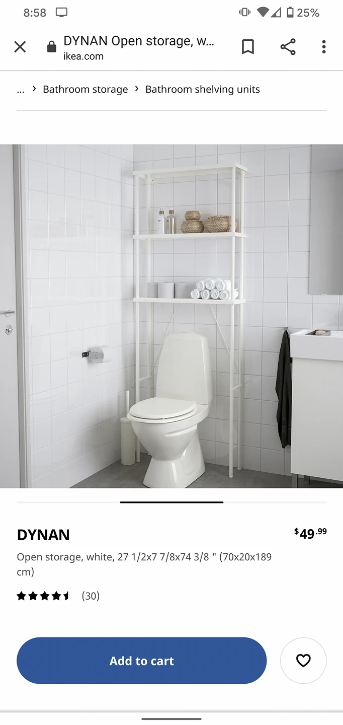 Over the toilet shelving unit. In excellent conditions, selling because I'm moving. Measurements in pics.