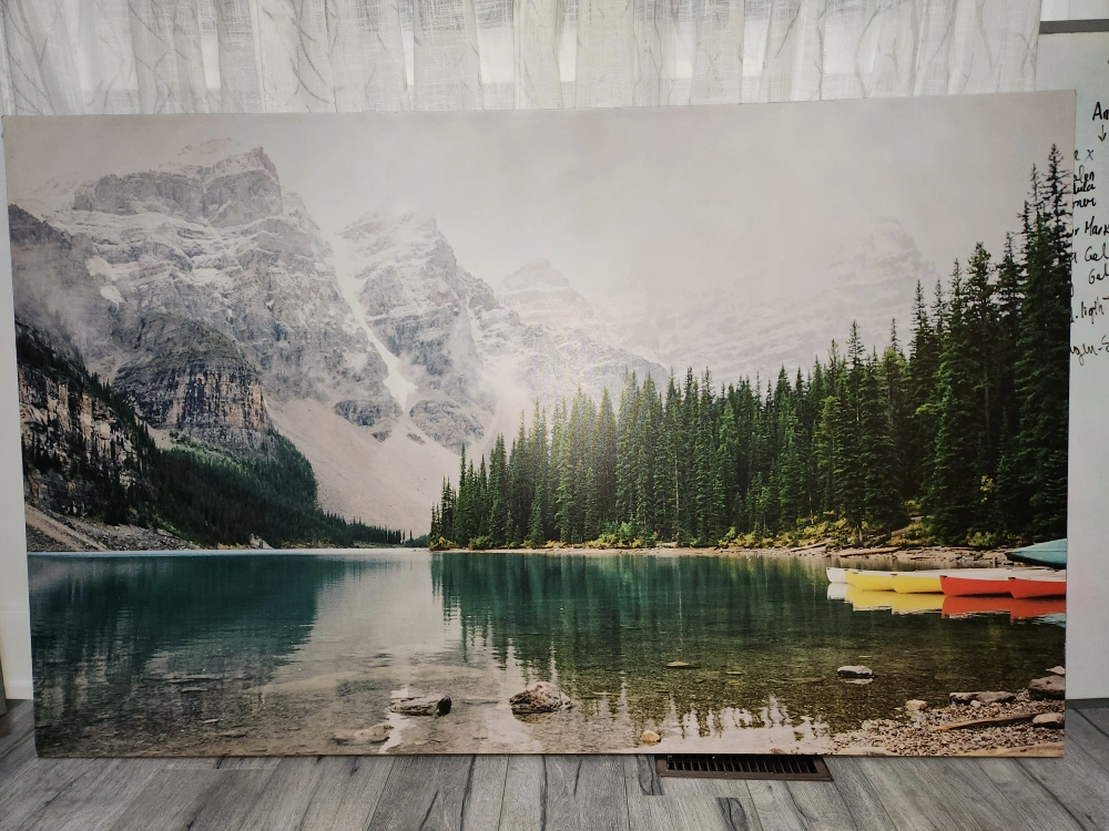 Canvas painting. Wall art The picture for home decoration . Mountains landscape Mountain and lake print on canvas . Available for pickup near Martin Grove and Westway. Smoke-free home . Welcome to see my other listings.