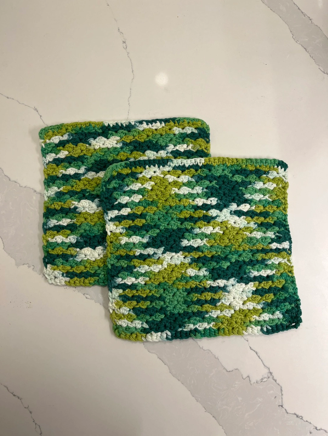 Brand new and hand made pair of dish cloths. When dirty, they can be thrown in the washing machine for multiple uses. Great for scrubbing dishes.