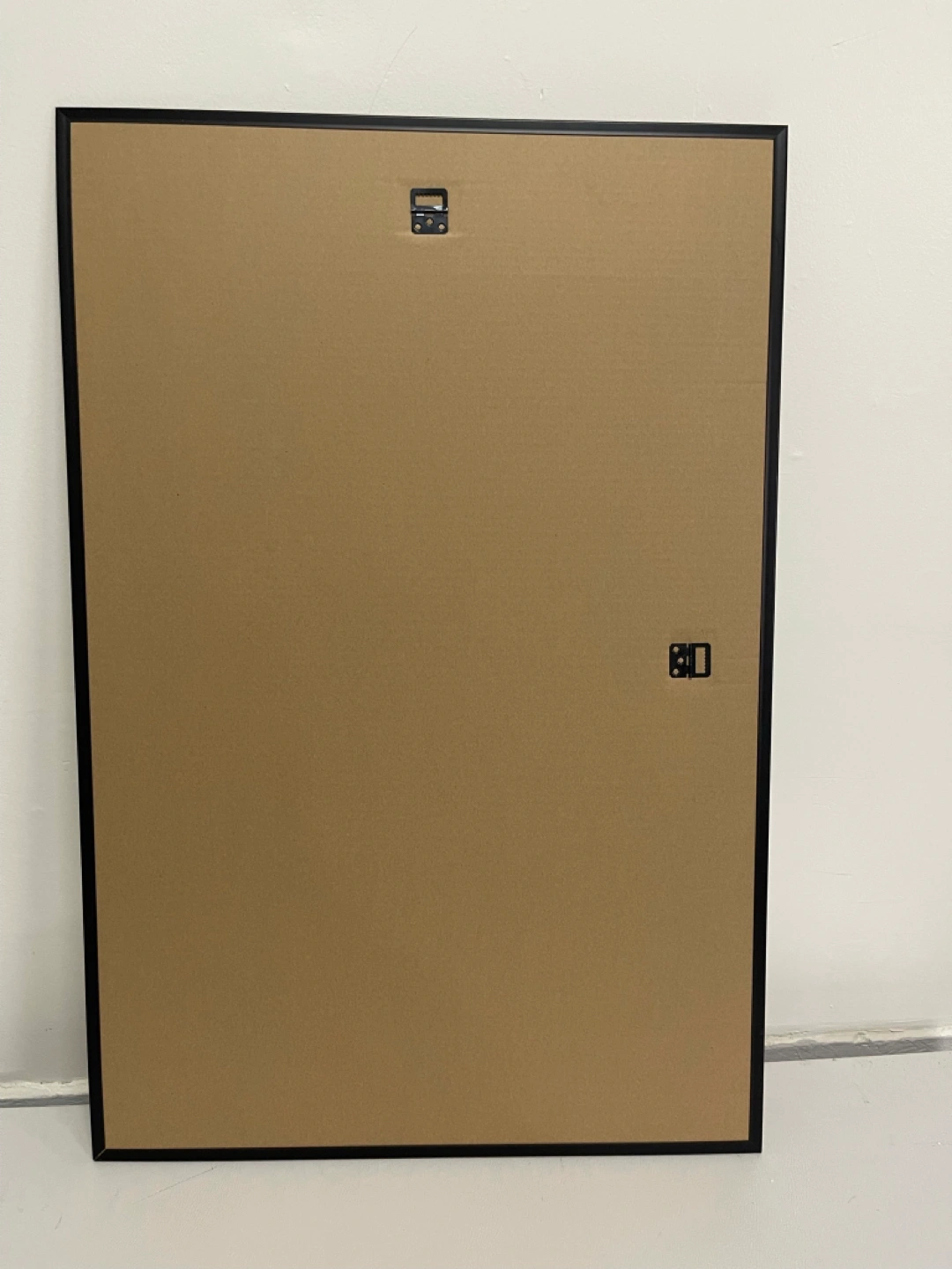 Original poster frame 24”x36” black frame with plastic top shield that has styrene glazing to help prevent breakage. A top Amazon seller that has stayed popular. Frame is backed with cardboard to add stability.