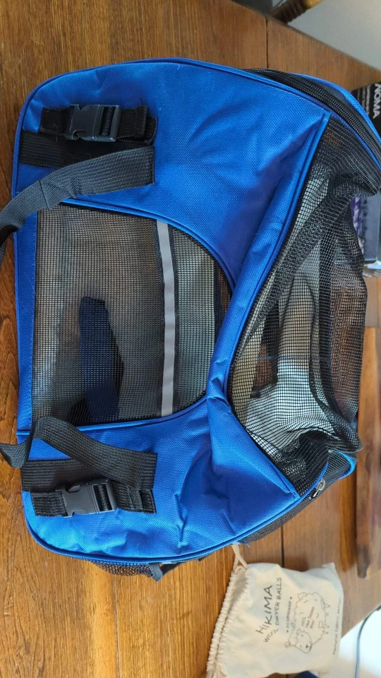 only used once a couple years ago, my cat is too heavy for it. very comfy and roomy for your pet, sherpa lined pad on the bottom. handles and shoulder strap provided