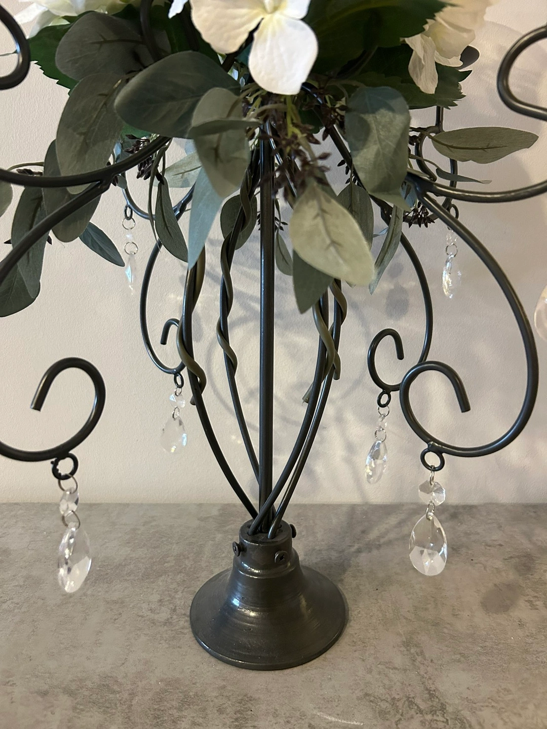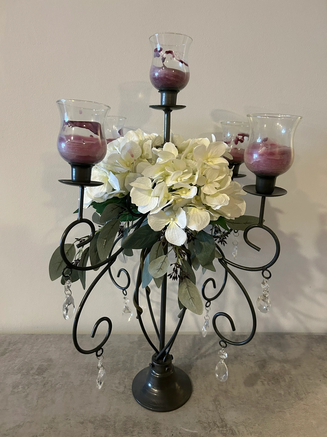 Gorgeous centrepiece for any occasion. I have 3 that are done up with the faux flowers and candles and I have 6 brand new ones with no faux flowers attached. Flowers can be removed.