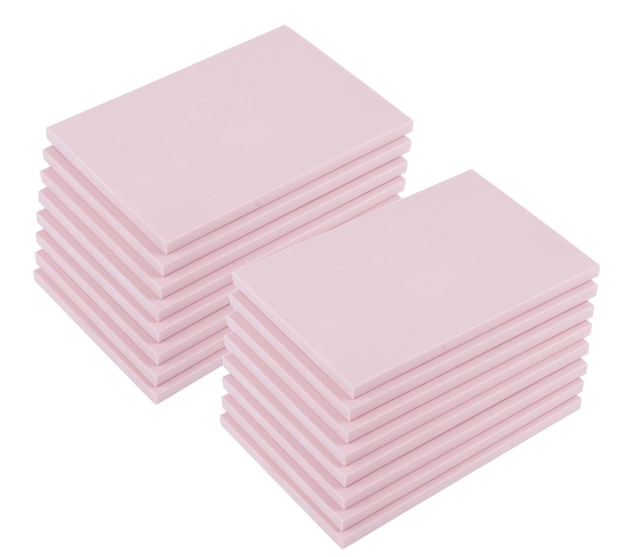 Brand new, never been used (still in plastic packaging) pack of 10 soft pink rubber stamp carving blocks. 4” x 6”. Great for beginners and professionals!