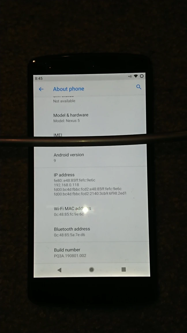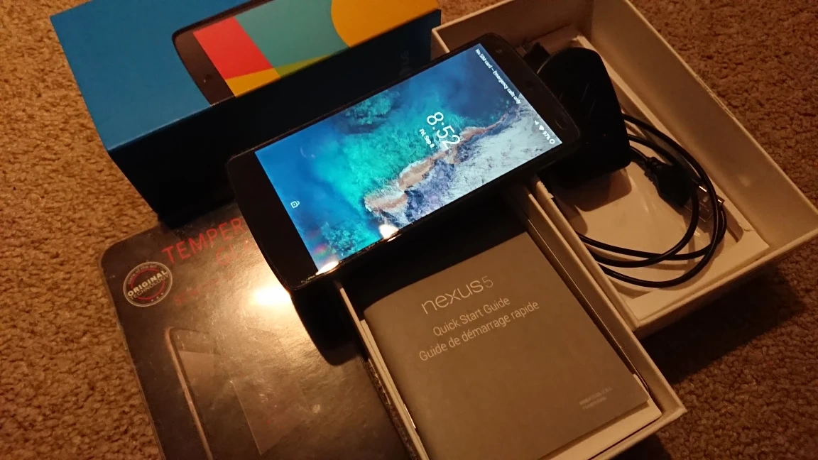 Nexus 5, Android 9, tempered glass protector
