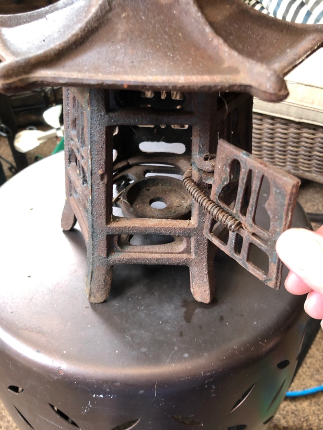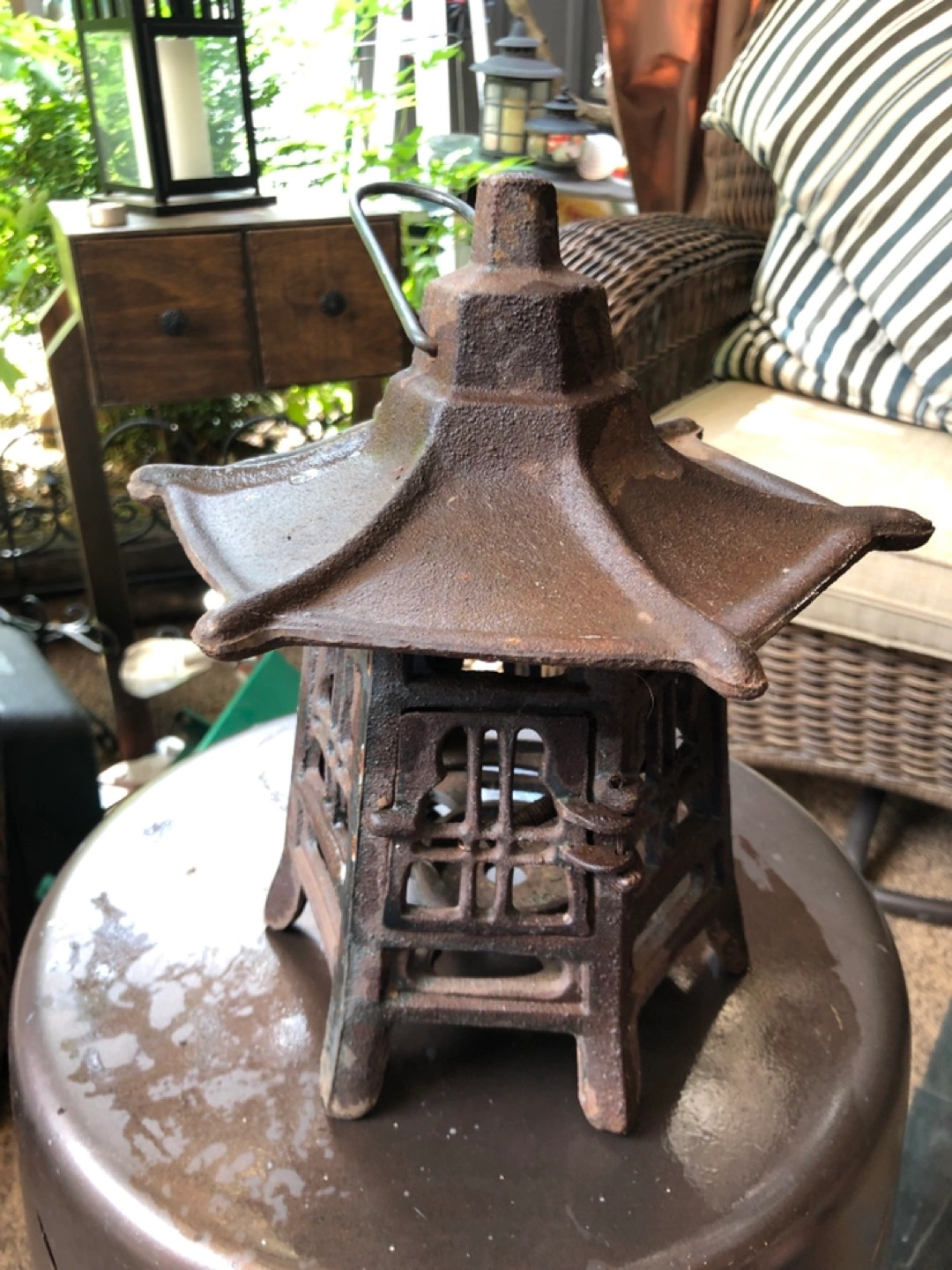 10” tall 8” wide heavy solid cast iron tea light lantern.