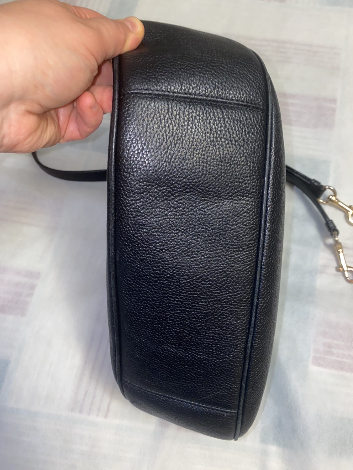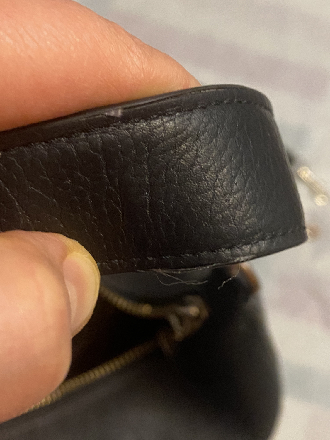 The bag is 13 years old Metal parts start oxidizing, zippers are still ok , only handles and shoulder straps metal are affected by rust Inside is clean Outside no scratches Handle has signs of using by coming out ropes , I cut and trimmed them away