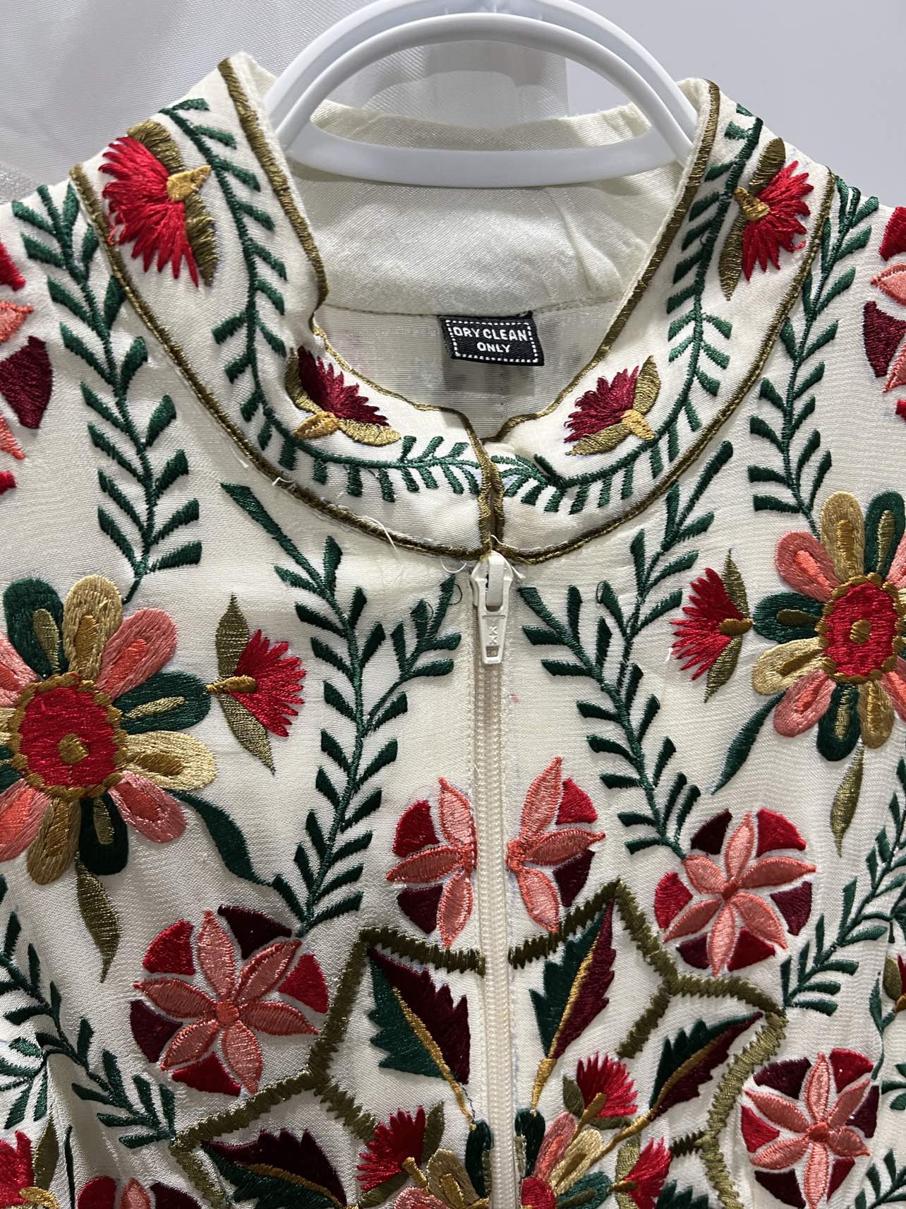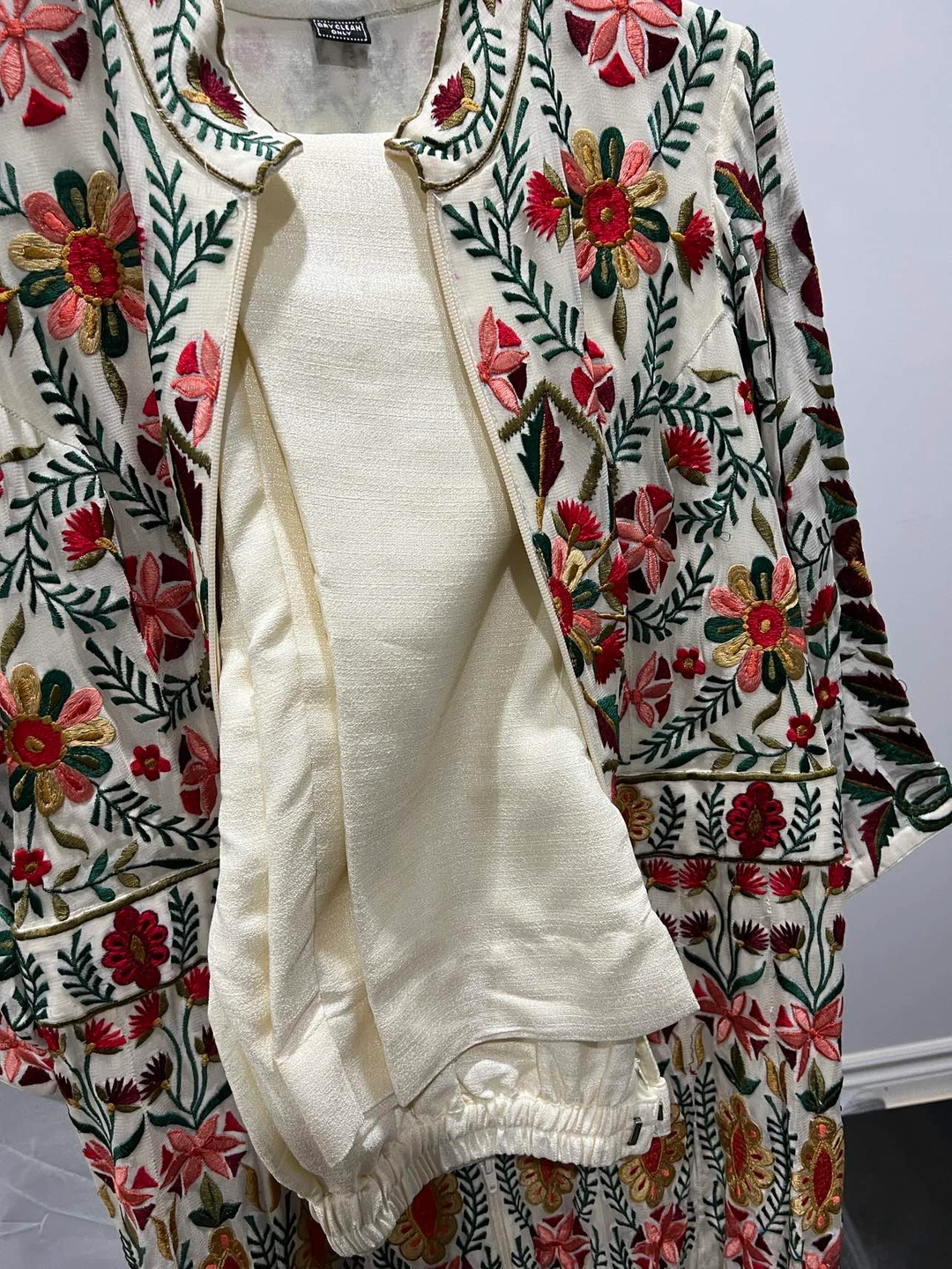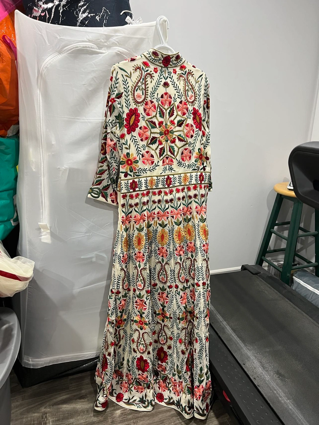 70Beautiful vibrant thread embroidery Size large New 3 piece dress