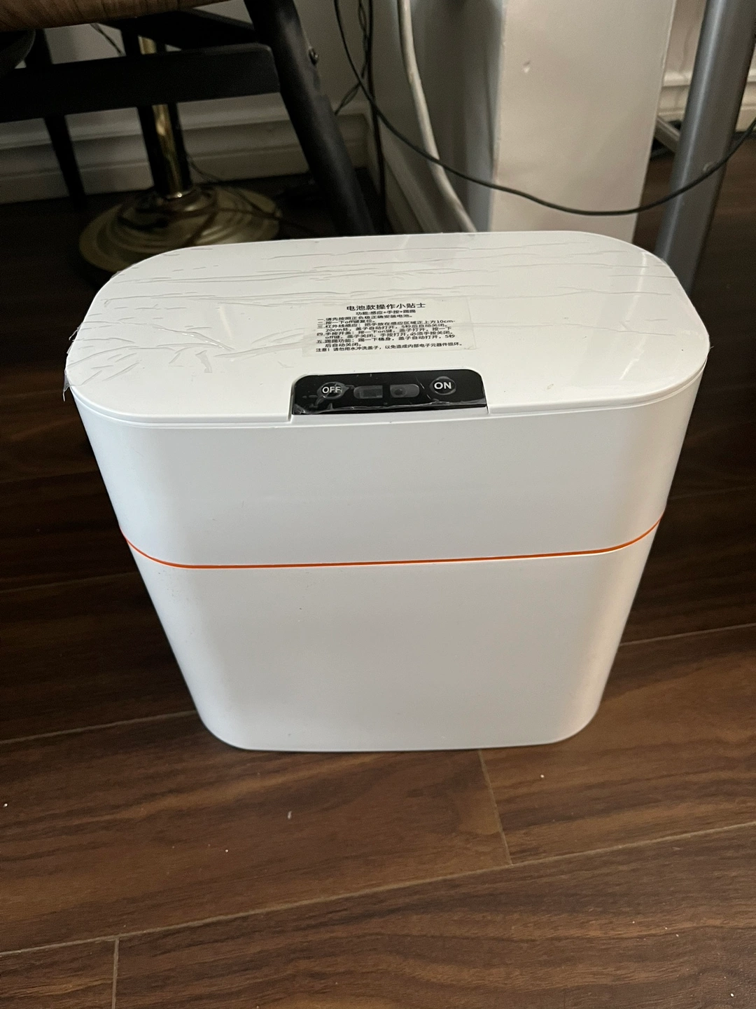 10.2x5.9x9.4 inch/26x15x24 cm. Can be used in bathroom, office, bedroom or living room. Battery operated. Touch free. Has a sensor to automatically open