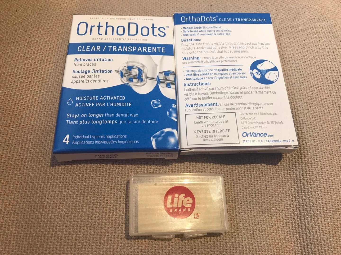 Five packages of four individual hygienic applications. Relieves irritation from braces. Aldo one package of wax strips.