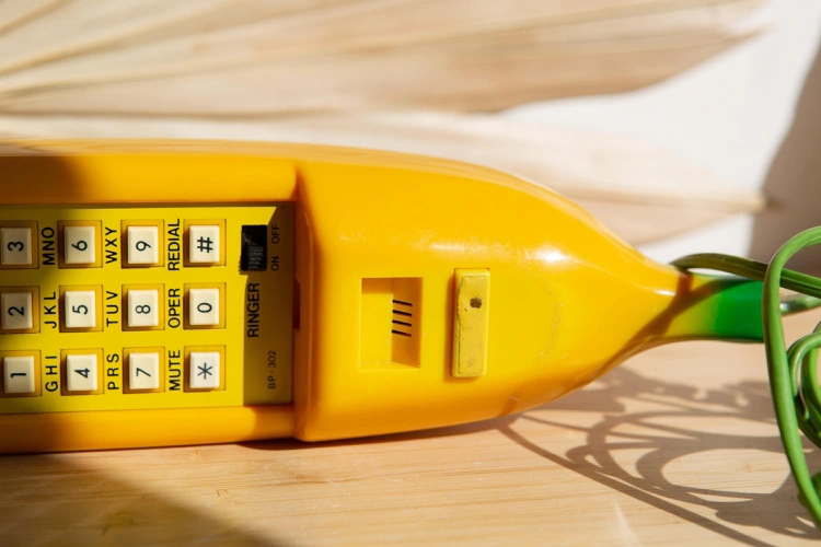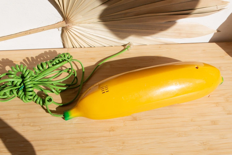 This is a super FUN and working vintage banana shaped push button phone…used as a great condo buzzer for last few years. No longer needed or keep forever 💛🍌