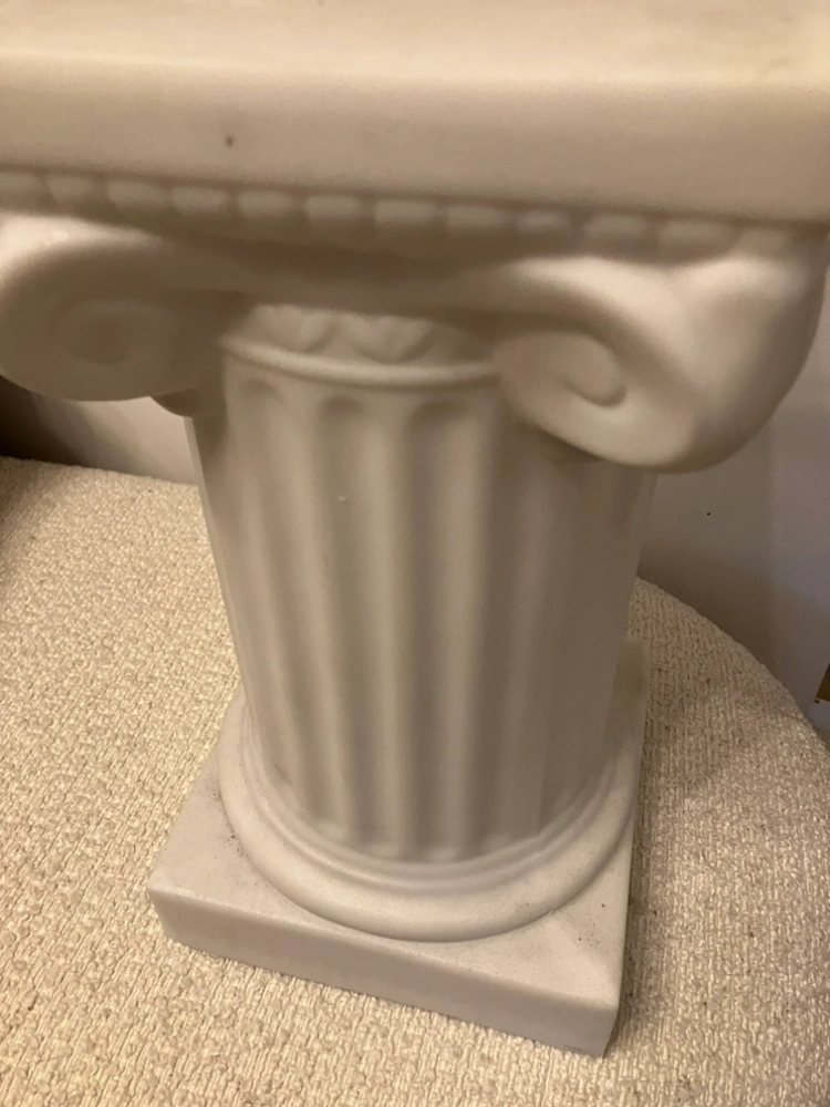 Beautiful and classic. Plant or candle stand, gorgeous styling piece. White plastic. Lightweight, great for city living!