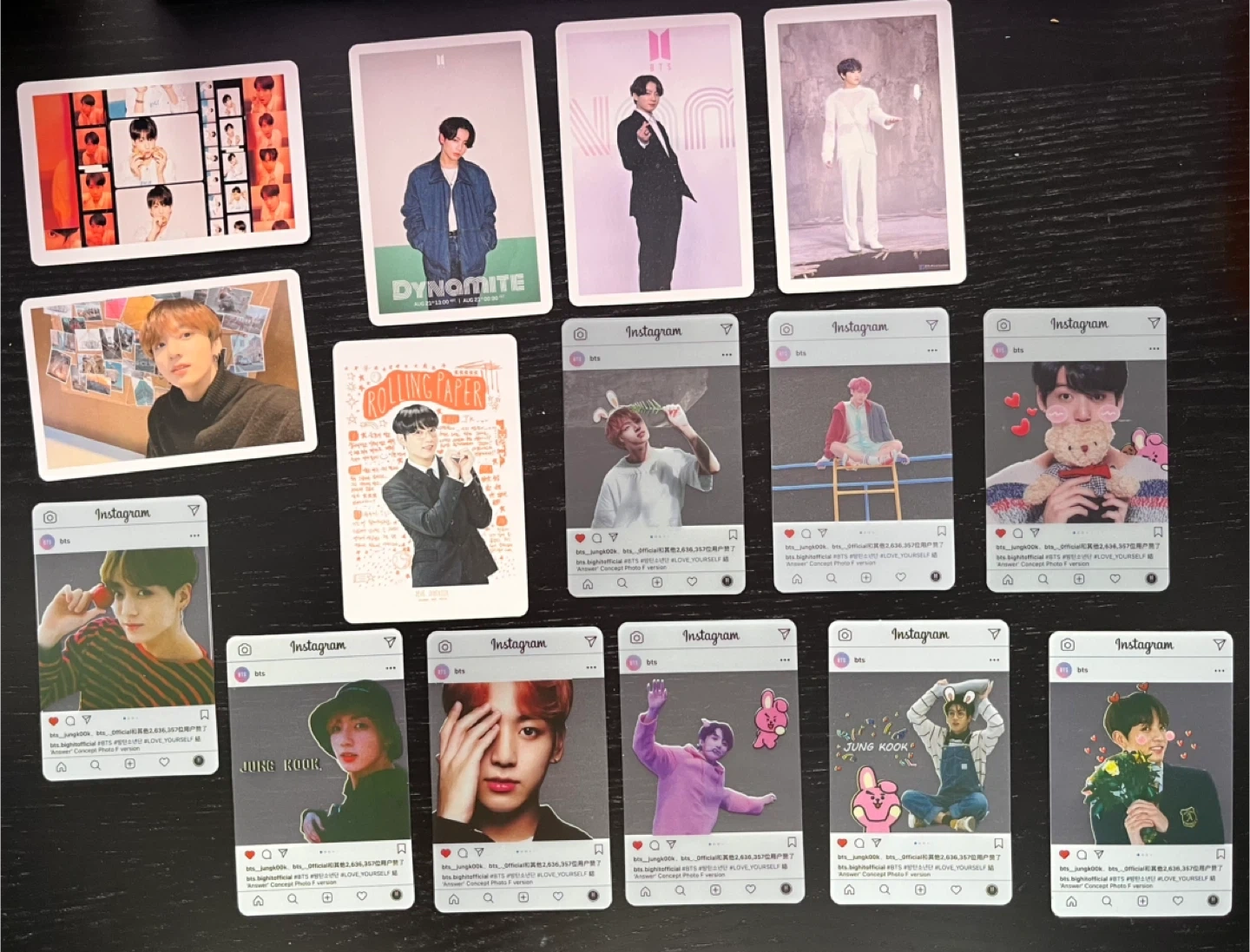 Collection of unofficial BTS photo cards. Selling each set individually or can be sold all together.