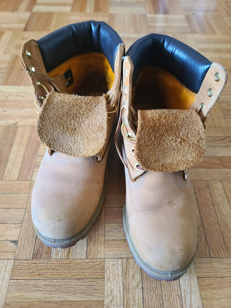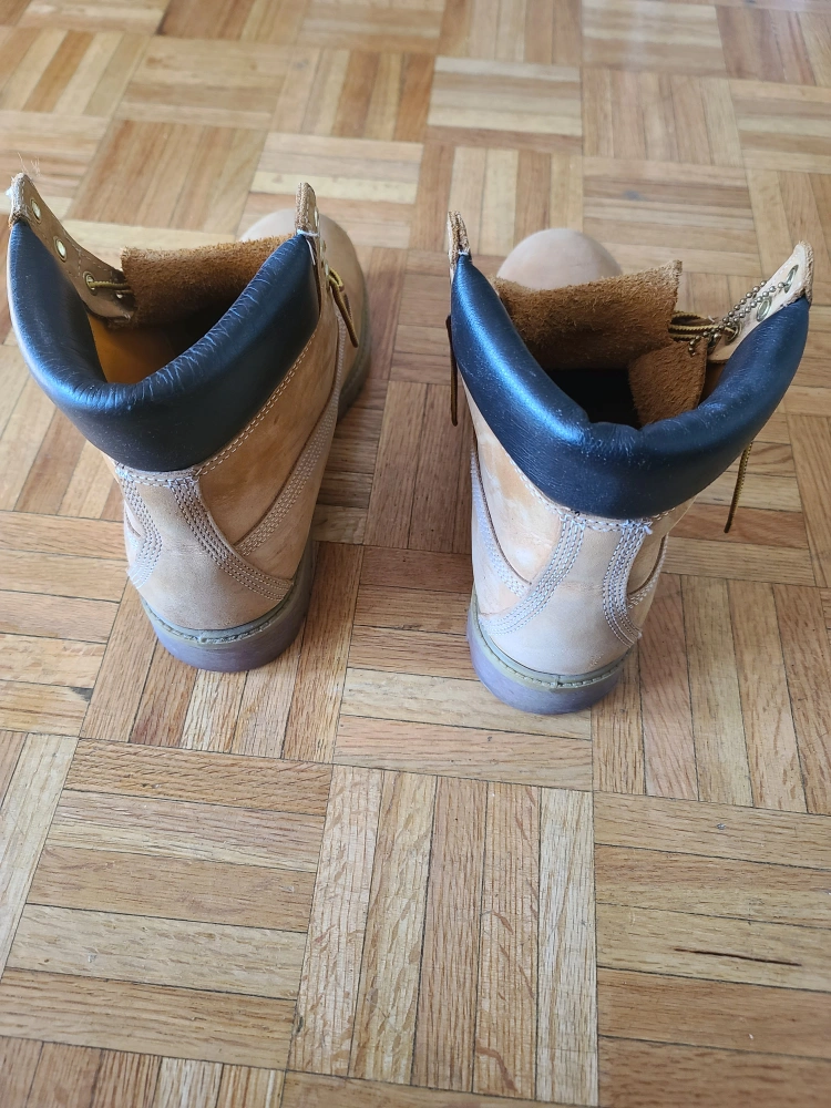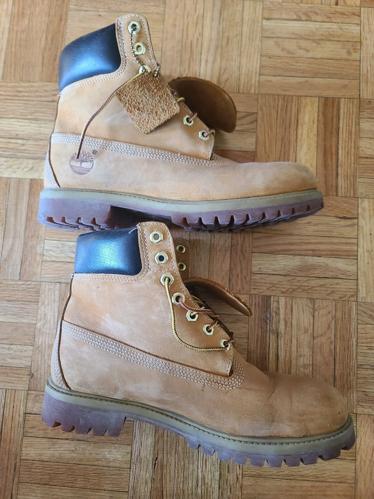 Original Timberland Boots size 8.5M are still in good condition as I rarely wore them. They are a bit tight for me now. They just need some nubuck-suede cleaner, and they will look like new. Open to fair negotiation.