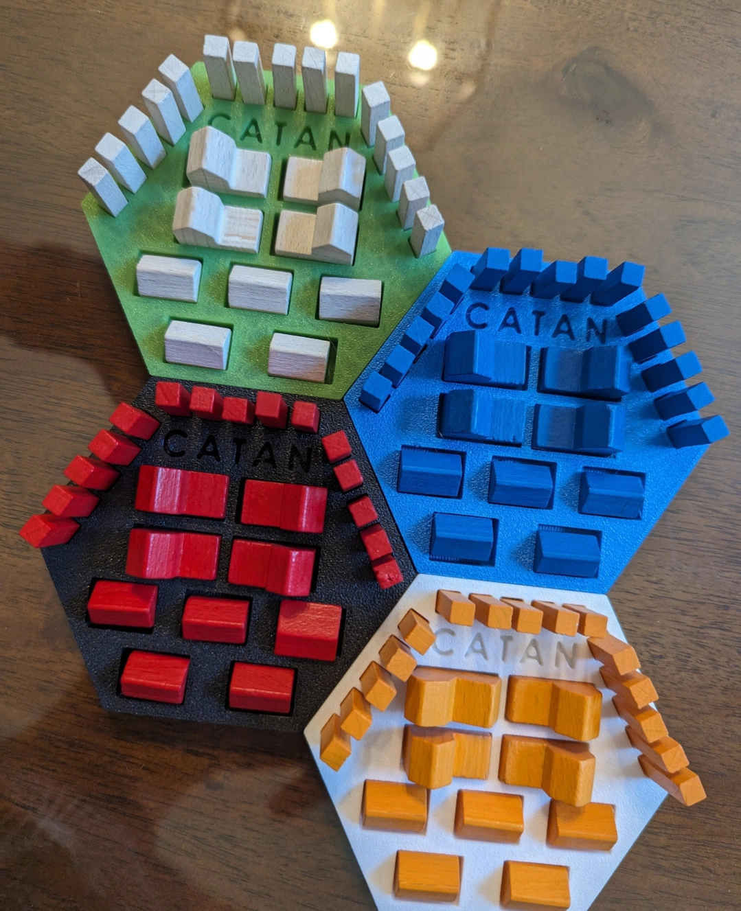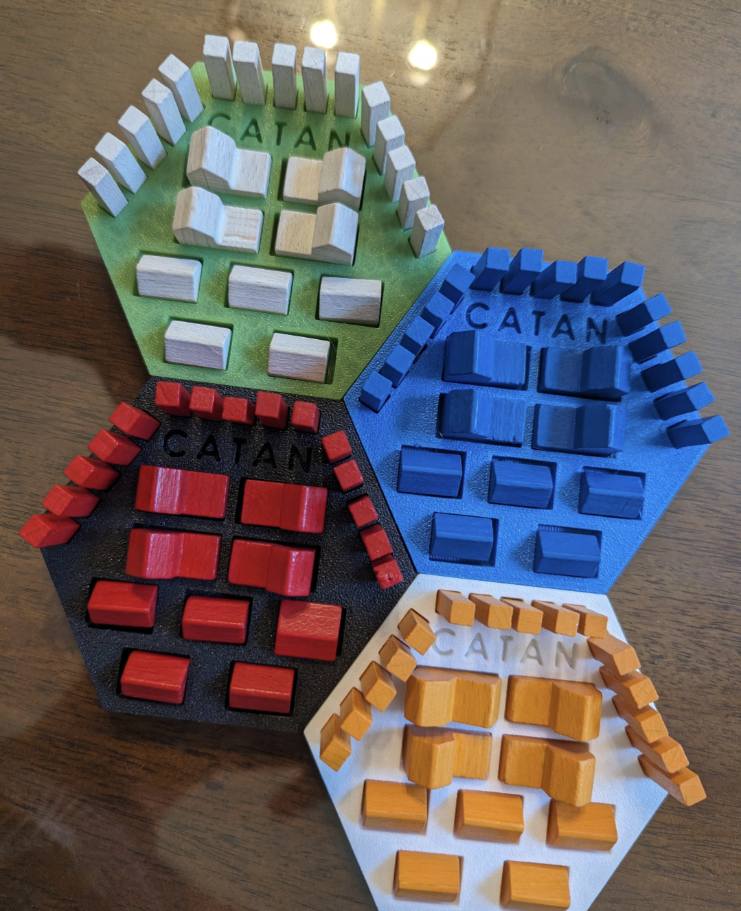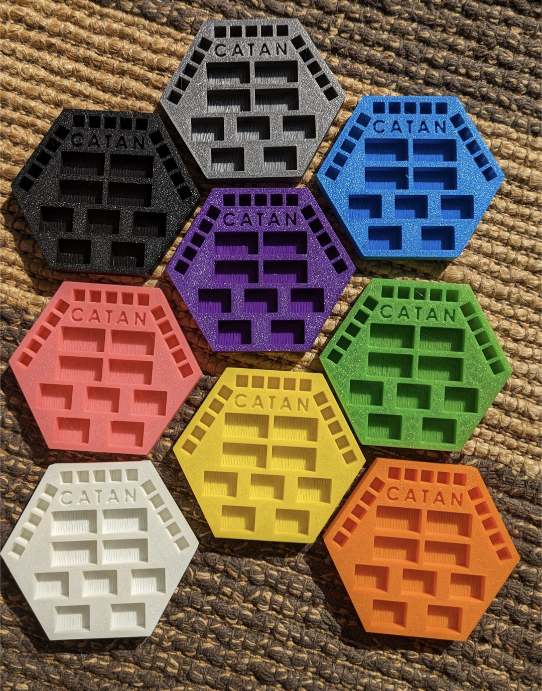 44Made to order. Holds a full set of Settlers of Catan pieces. Pickup in Burlington or I can ship for an extra $3 to anywhere in Canada. Can make in the flowing colors: Pink Grey Black White Yellow Light Blue Red Green You can also order through here if you want as well Shopify https://wormpoplabs.com/products/game-piece-holders-for-settlers-of-catan-07001 Etsy https://wormpoplabs.etsy.com/listing/1496107001
