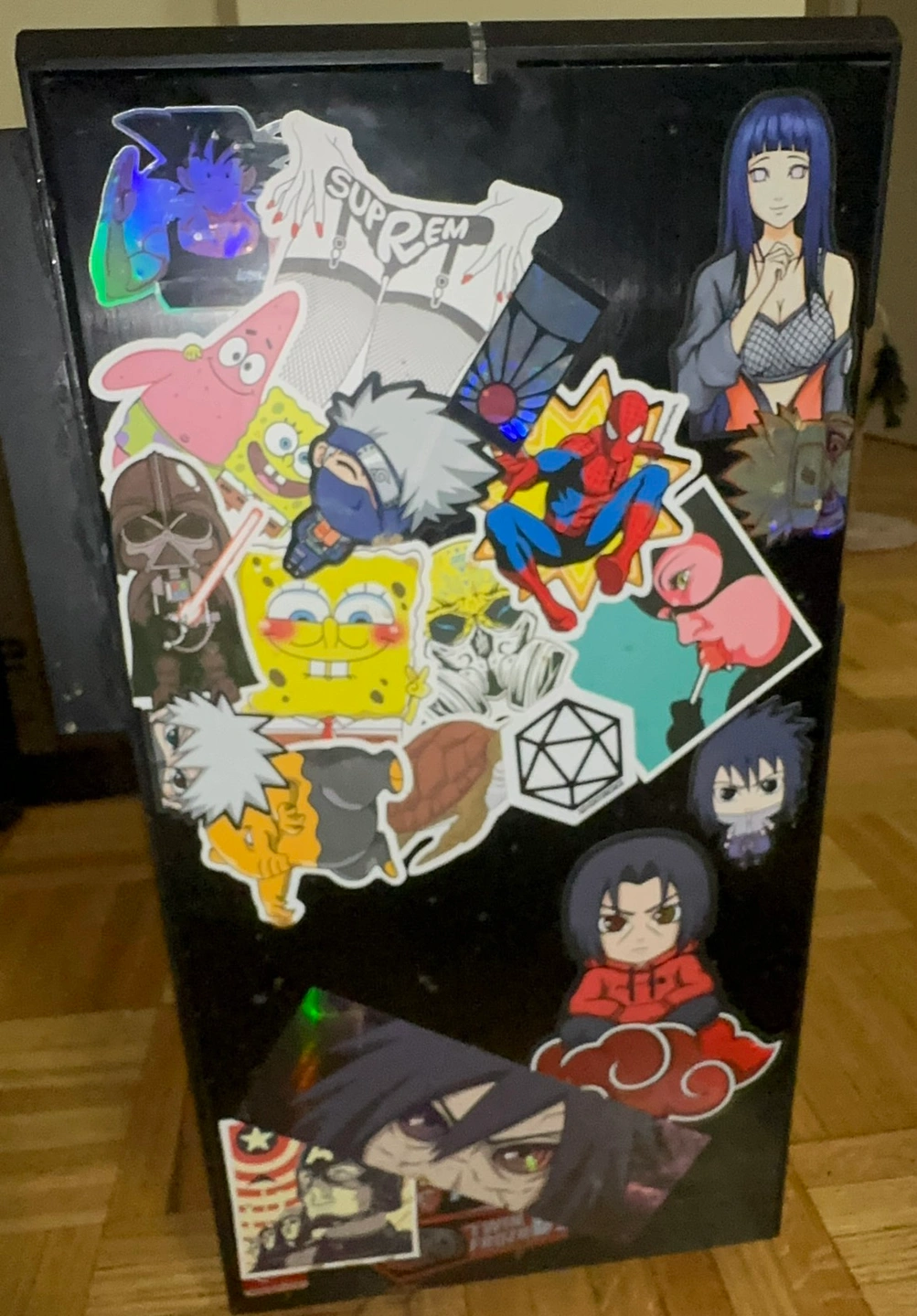 Front panel has a bunch of stickers on it. I can try to take these off if you do not want them on there. Just let me know!