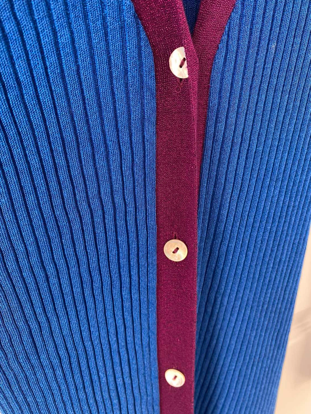 Very long button cardigan. Metallic fabric.