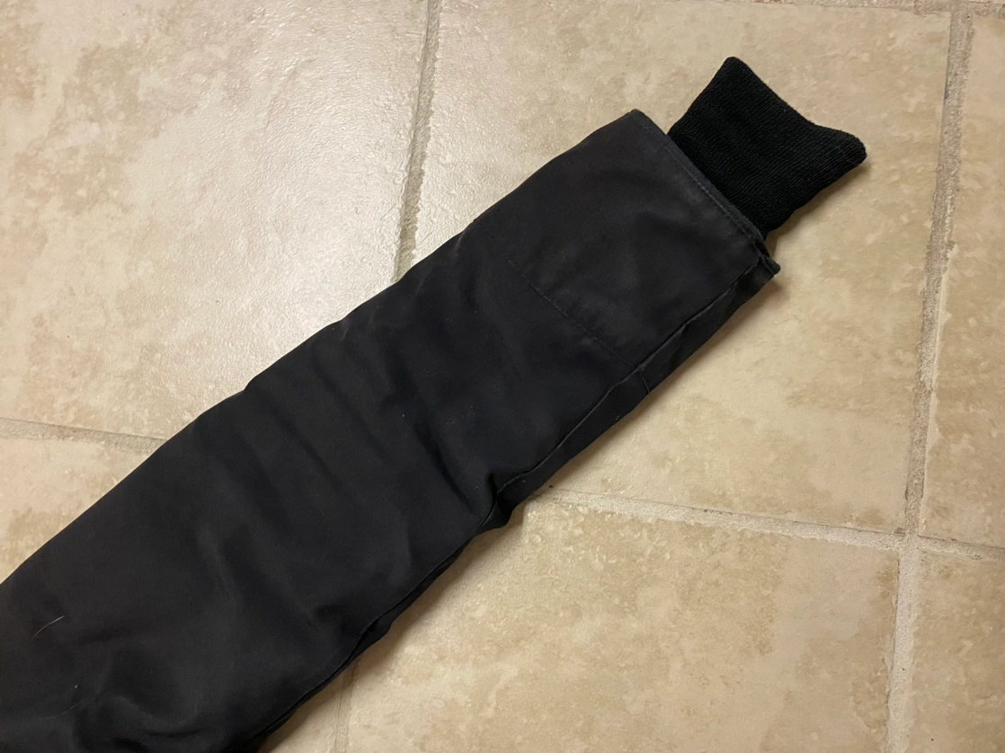 Excellent Condition. Seams in tact, no holes or stains, zips flawlessly. Minimal noticeable wear. Simply no longer my size.