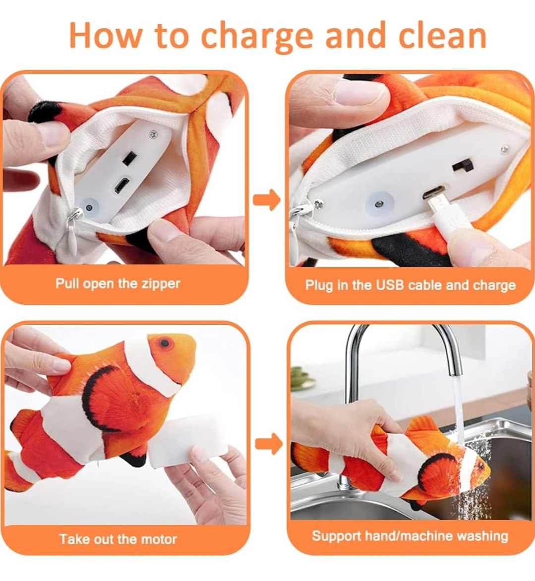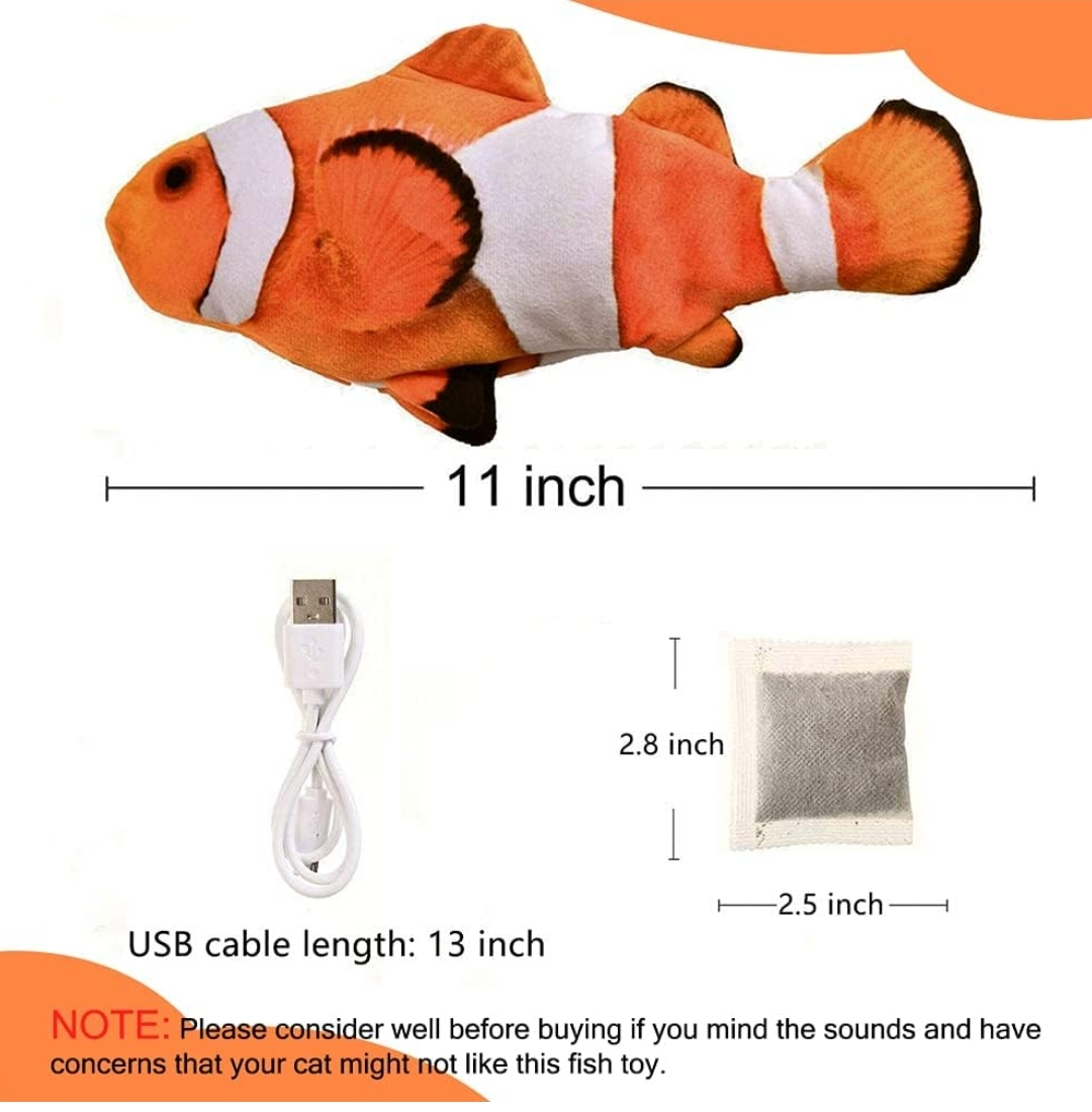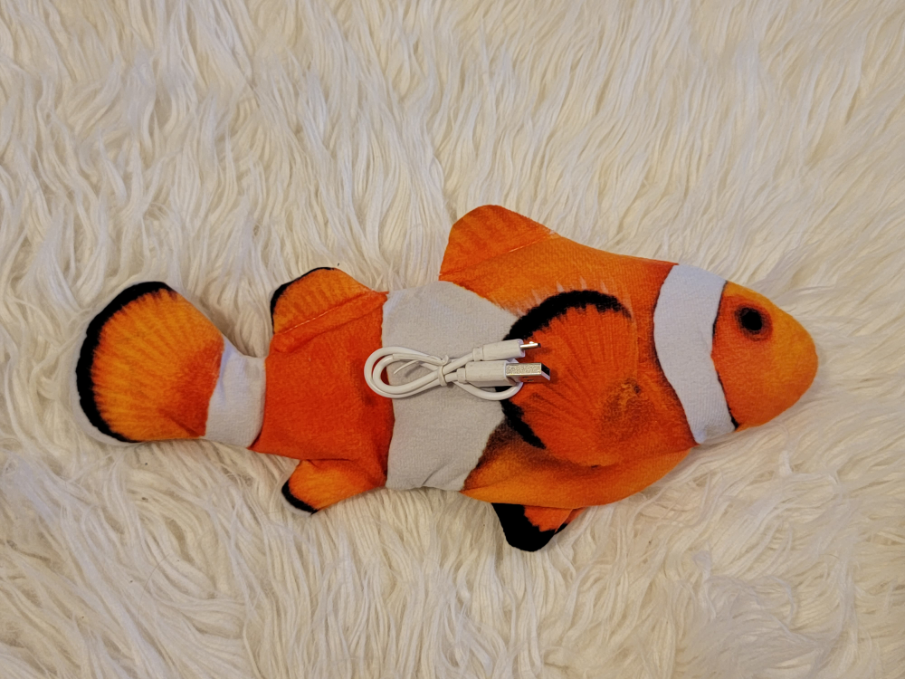 New - never used Toy fish with movements, catnip and charging cable Electric Floating Fish Toy for Cats, 28cm Interactive Indoor Toy, Realistic Plush Fish Toy, Chew Toy for Cats or Kittens (Clown Fish)
