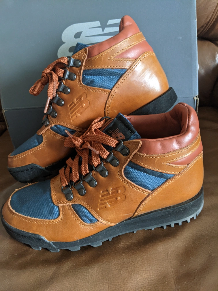 New Balance Rainier "Glazed Ginger" Brown and Blue accent Unisex boots for sale.