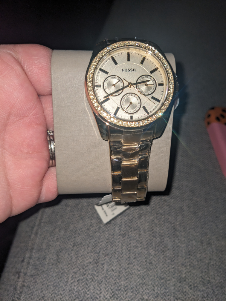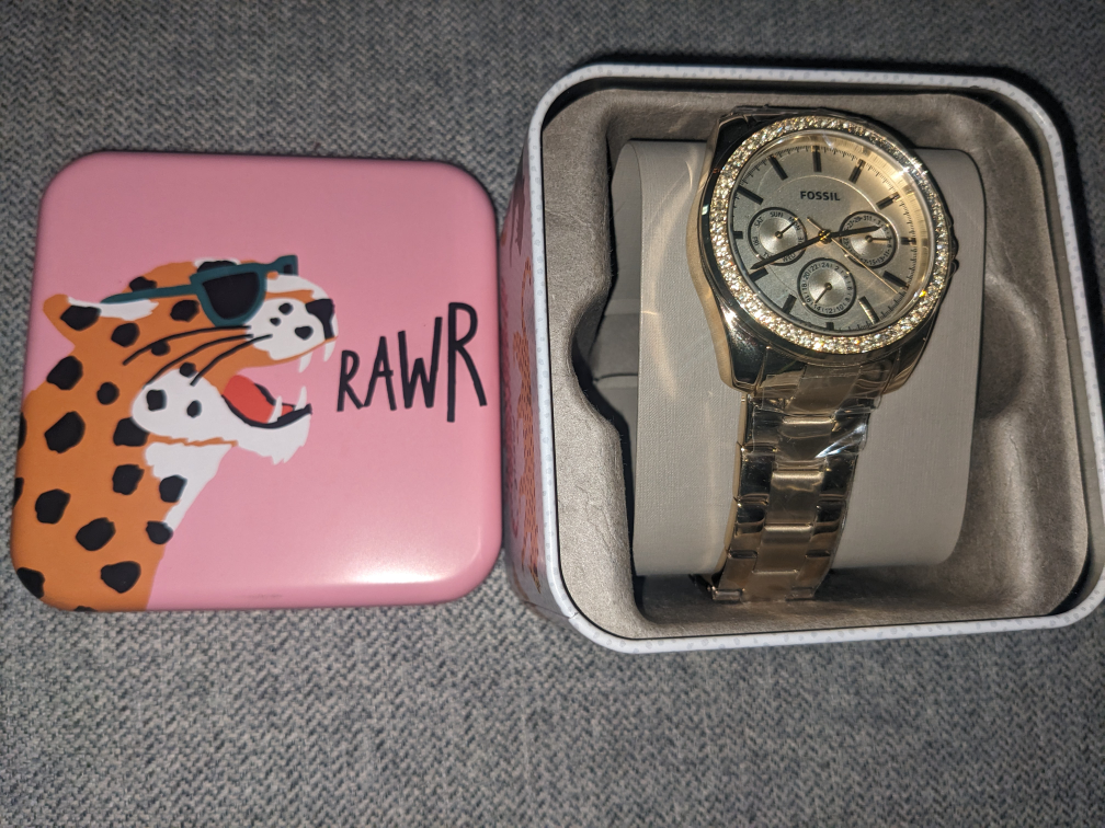 Brand new, never worn fossil watch in the color gold. Also comes in a tin case, could be perfect for a Christmas present!