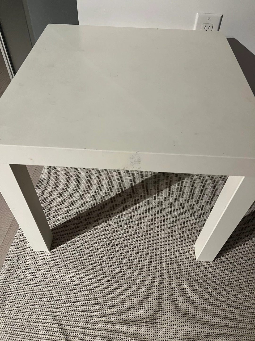 118It is a white table which can be used either as a coffee table or a side table. It has few wear and tear and scratches which can be cleaned! I can dismantle the table. Selling it because I have no space to keep it.