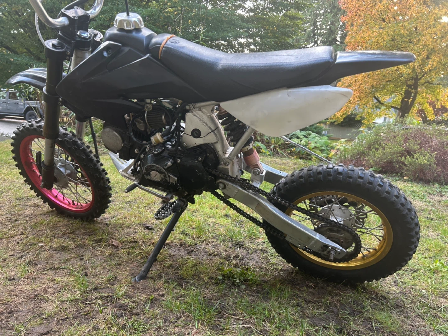 $1000 shoot me an offer NEED GONE 125cc pit bike Thing rips I put on a stunt clutch and a handbrake for easier wheelies but the brake needs to be bled a little bit Top speed is around 85-90kmh Oil change done October 19 2025 Shoot me an offer I do have wiggle room on price