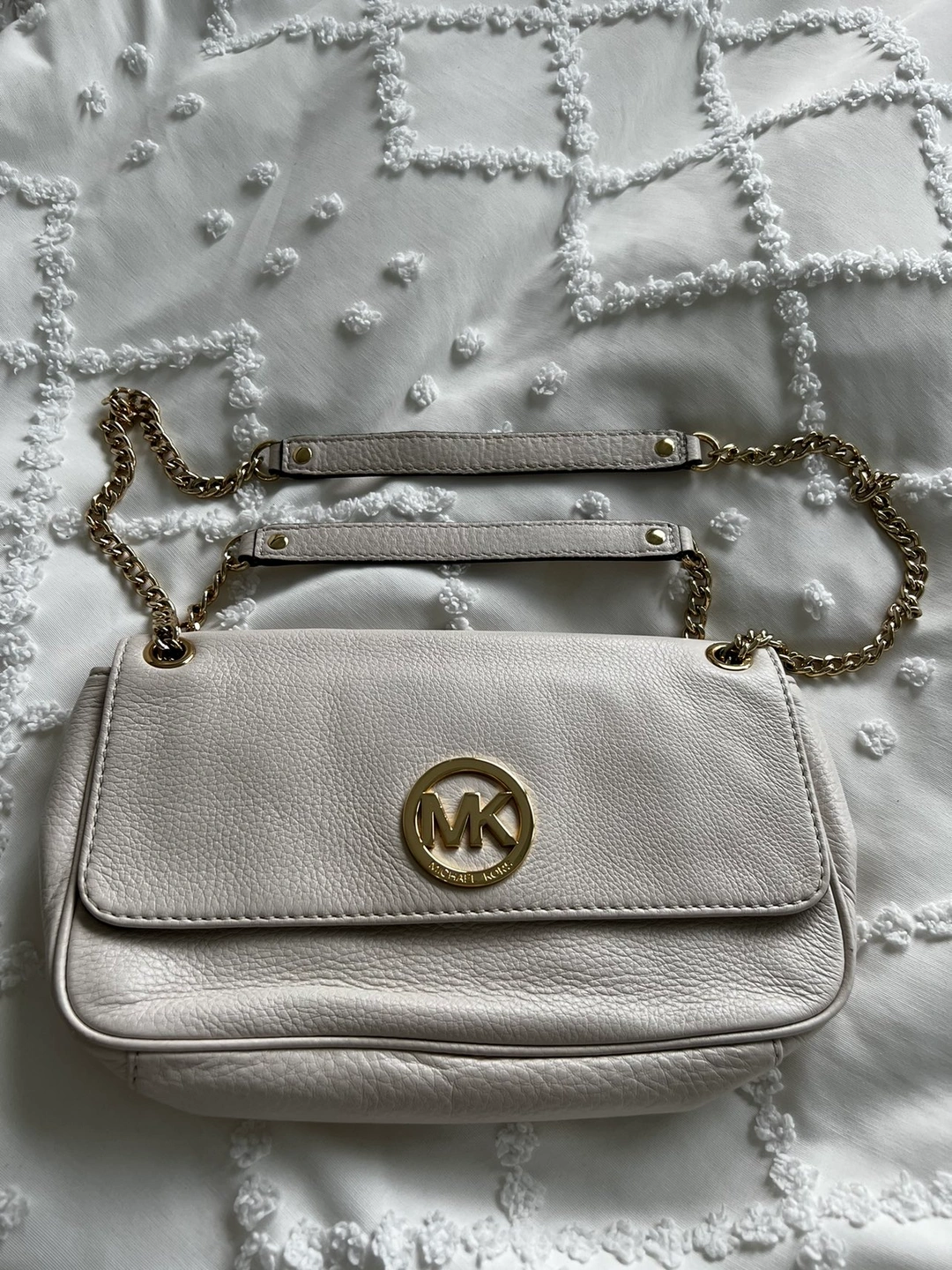 Michael Kors crossbody clutch. Soft cream genuine leather. Great condition