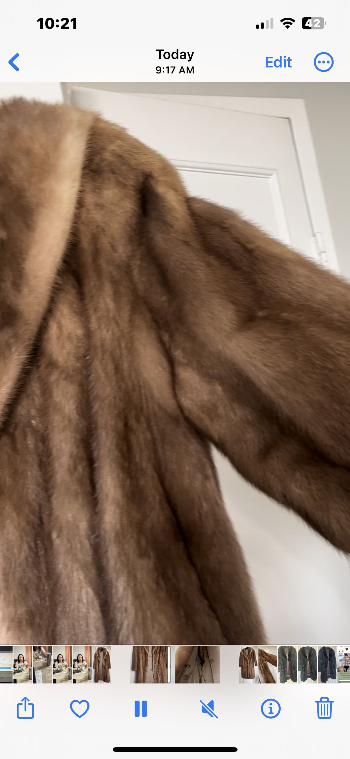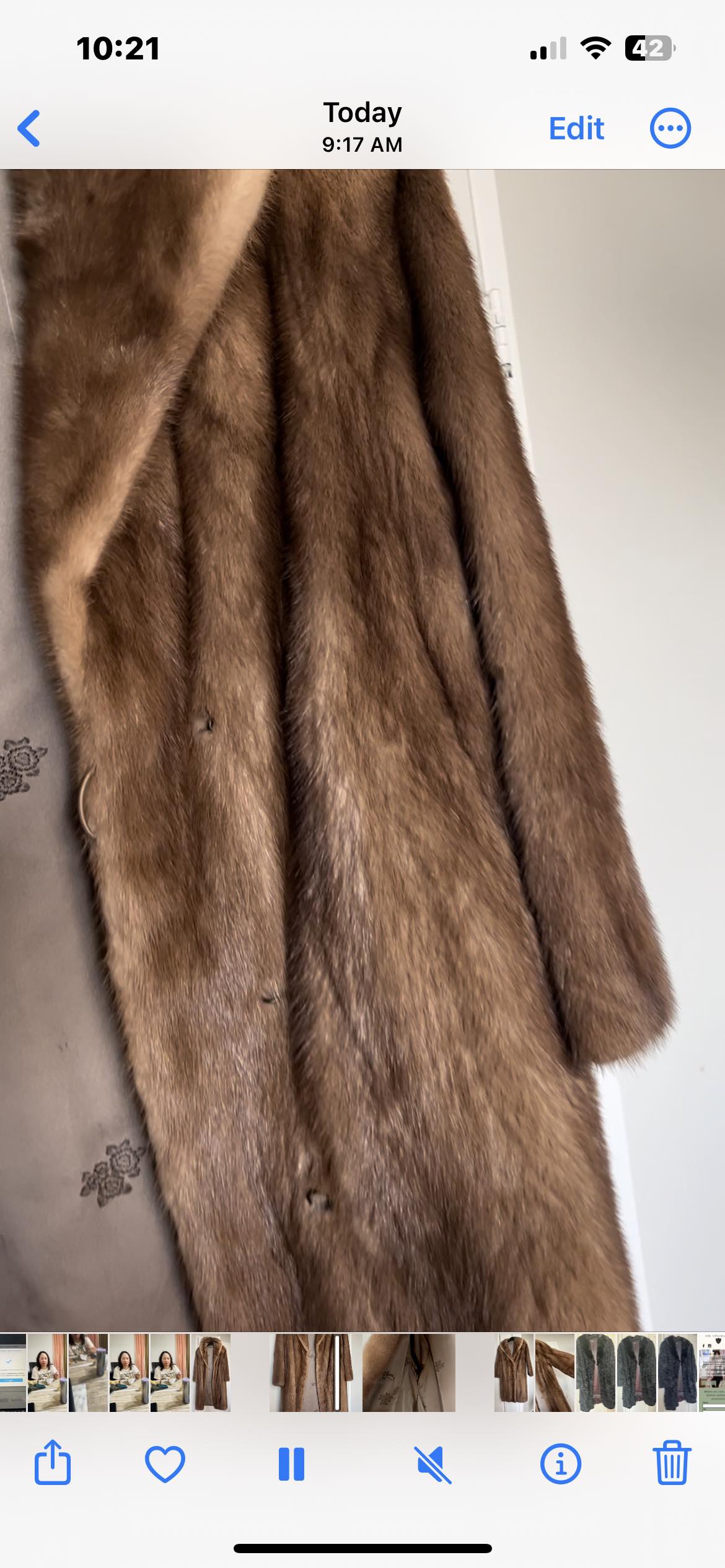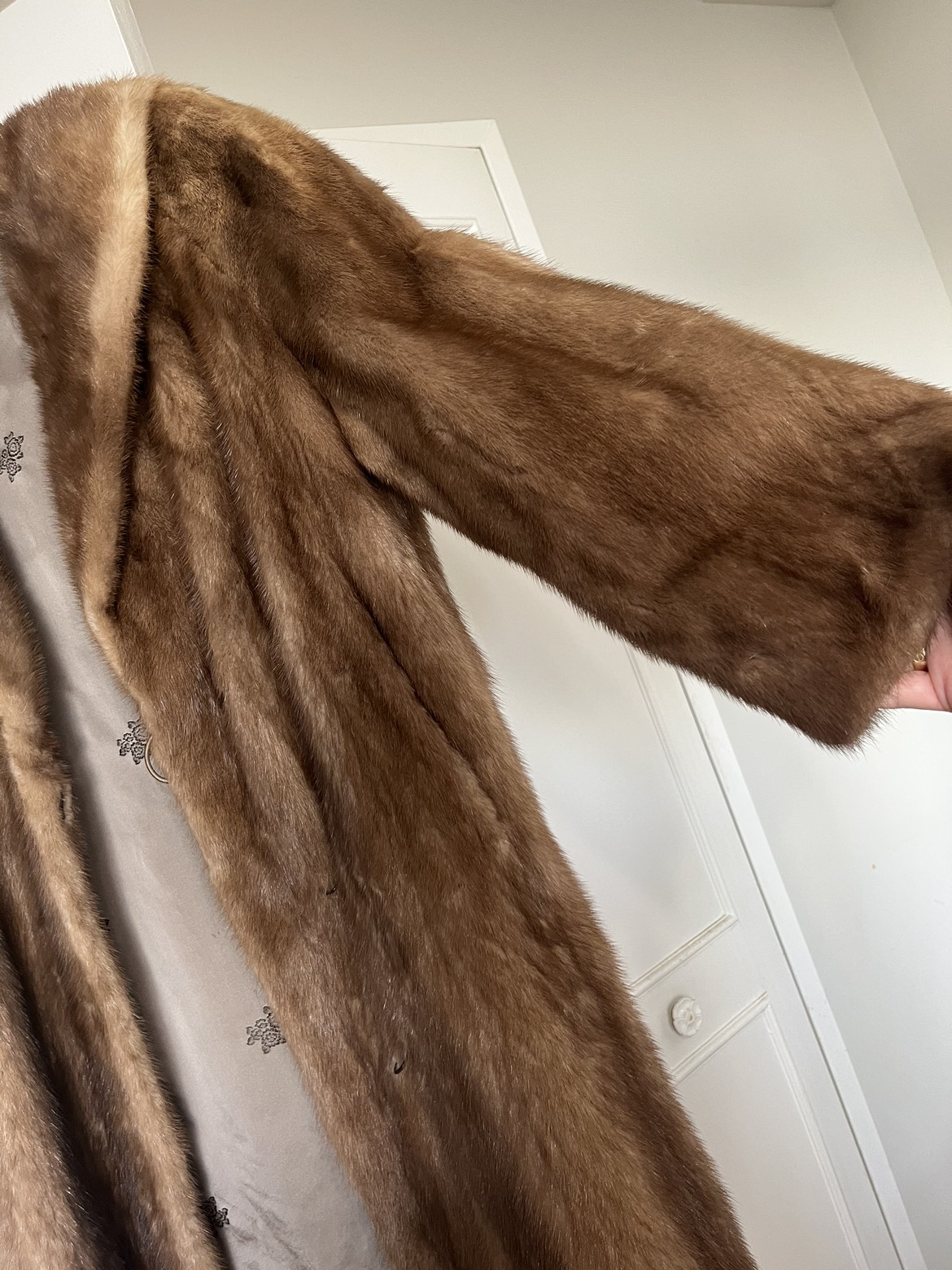 Label removed. There is an initial name inside the coat. Otherwise, it is in perfect condition, fur is of high quality, gives a complete feeling of warmth, was originally priced a couple of hundreds