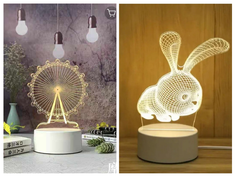 3D Illusion LED Night Light, Table Lamp Ferris whell and bunny