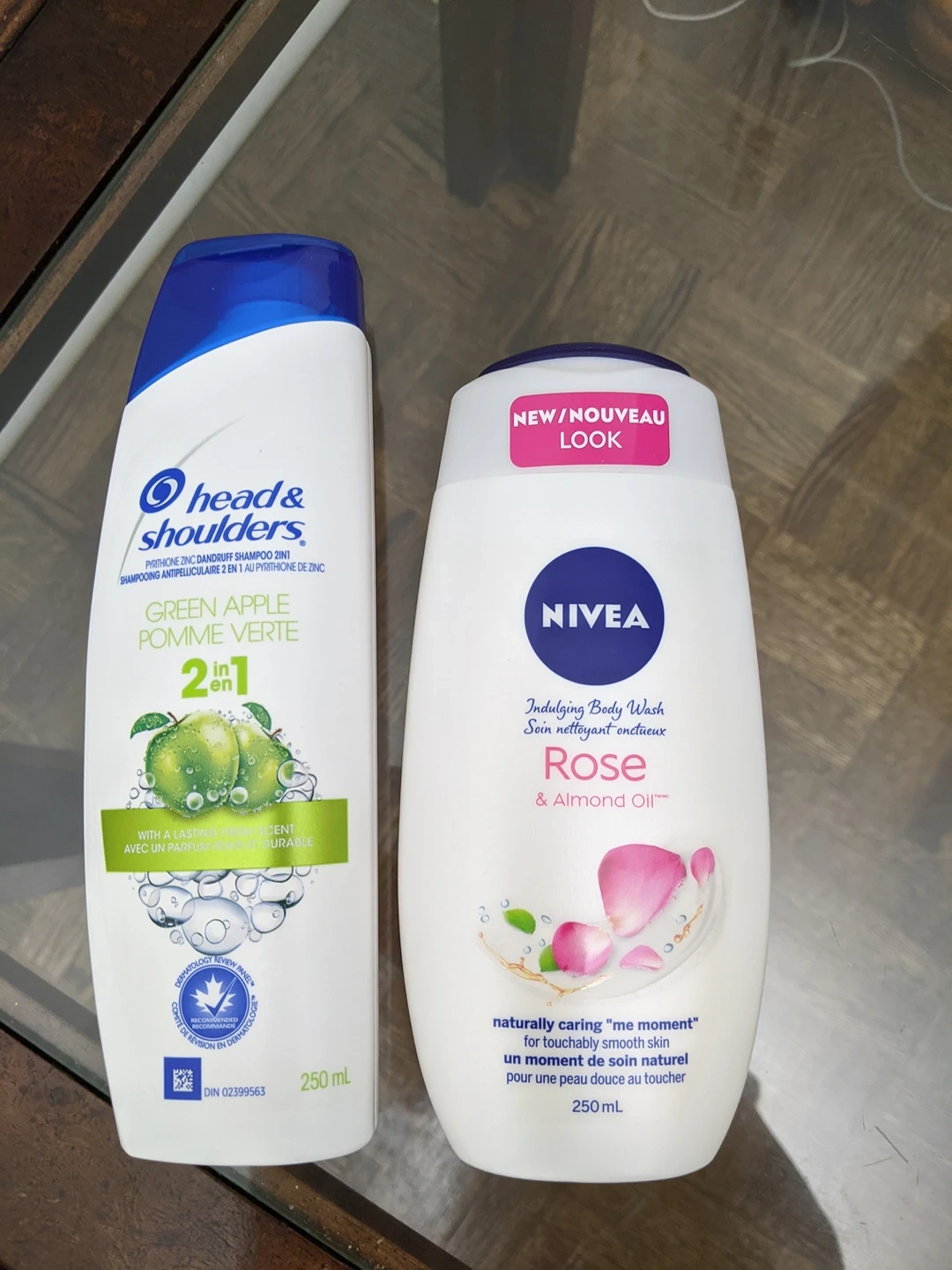 head& shoulders dandruff shampoo & Nivea rose & almond body wash