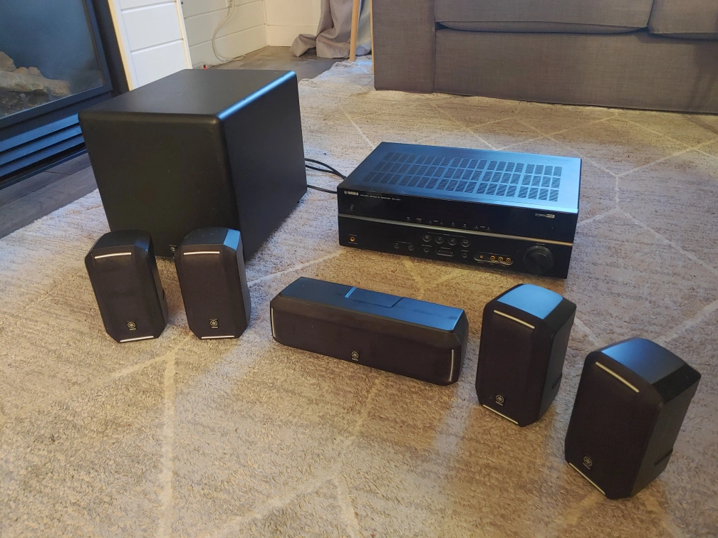Yamaha RX V371 HDMI receiver and 5.1 speaker set up. All great condition. Speakers all sound great. Never cranked.