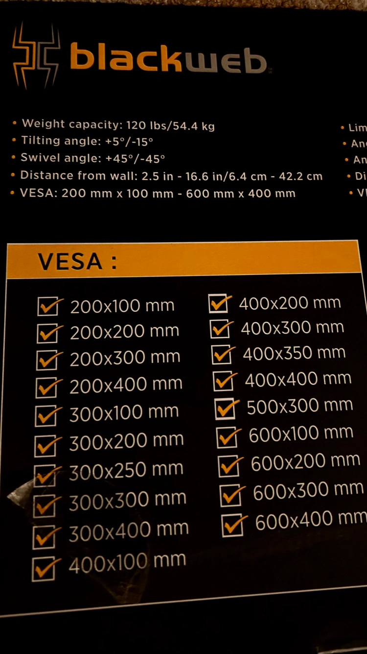 For a TV SIZED: 50 in - 86 in /127 cm - 218,44 cm