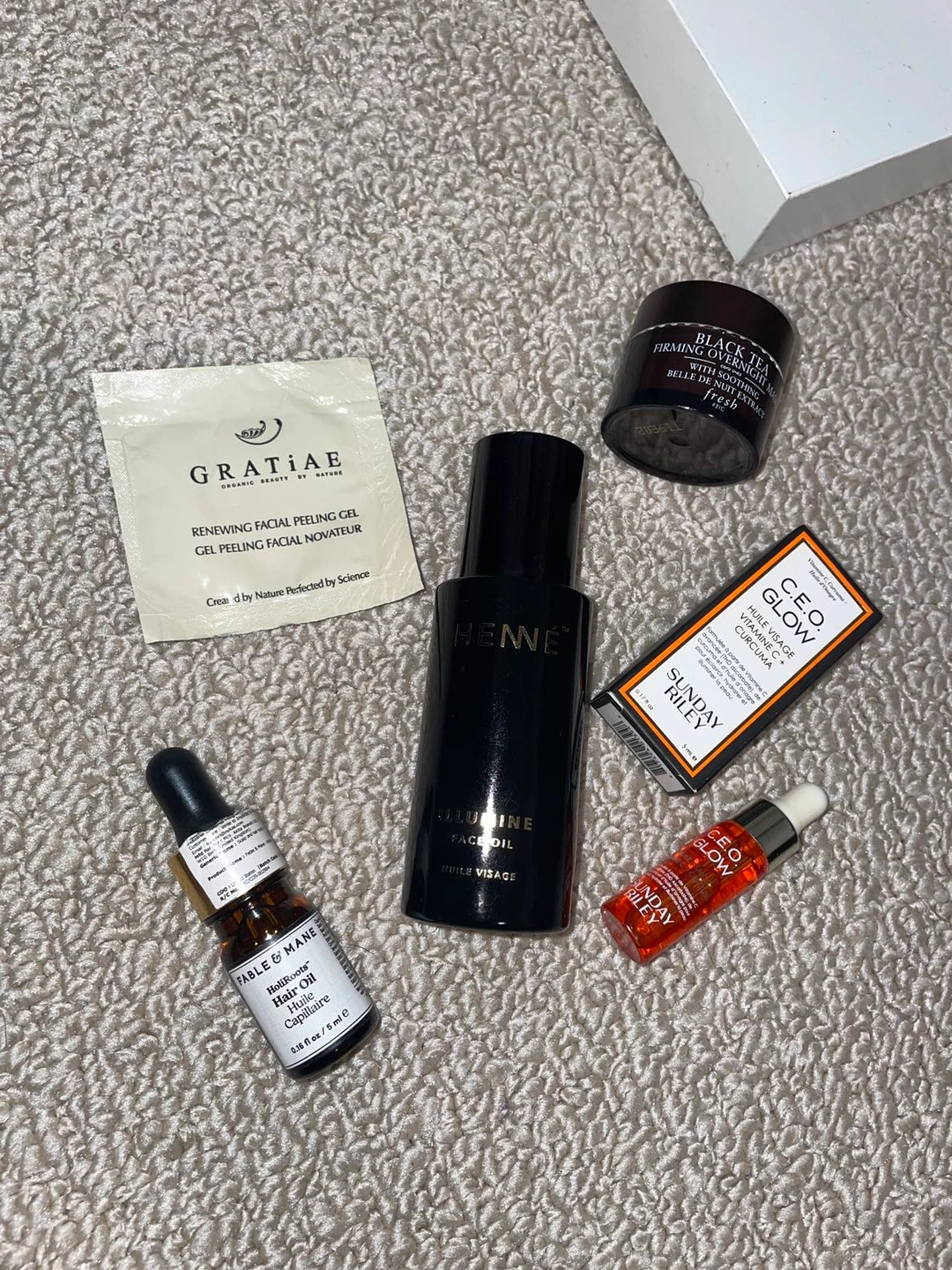 Full sized face oil valued at over $100 with some deluxe sample sized products. The face oil has been used a couple times, good for dry skin. I don’t need it because I bought another one. Checkout the face oil here : https://henneorganics.com/serene-face-oil. I got it from beauty heroes.