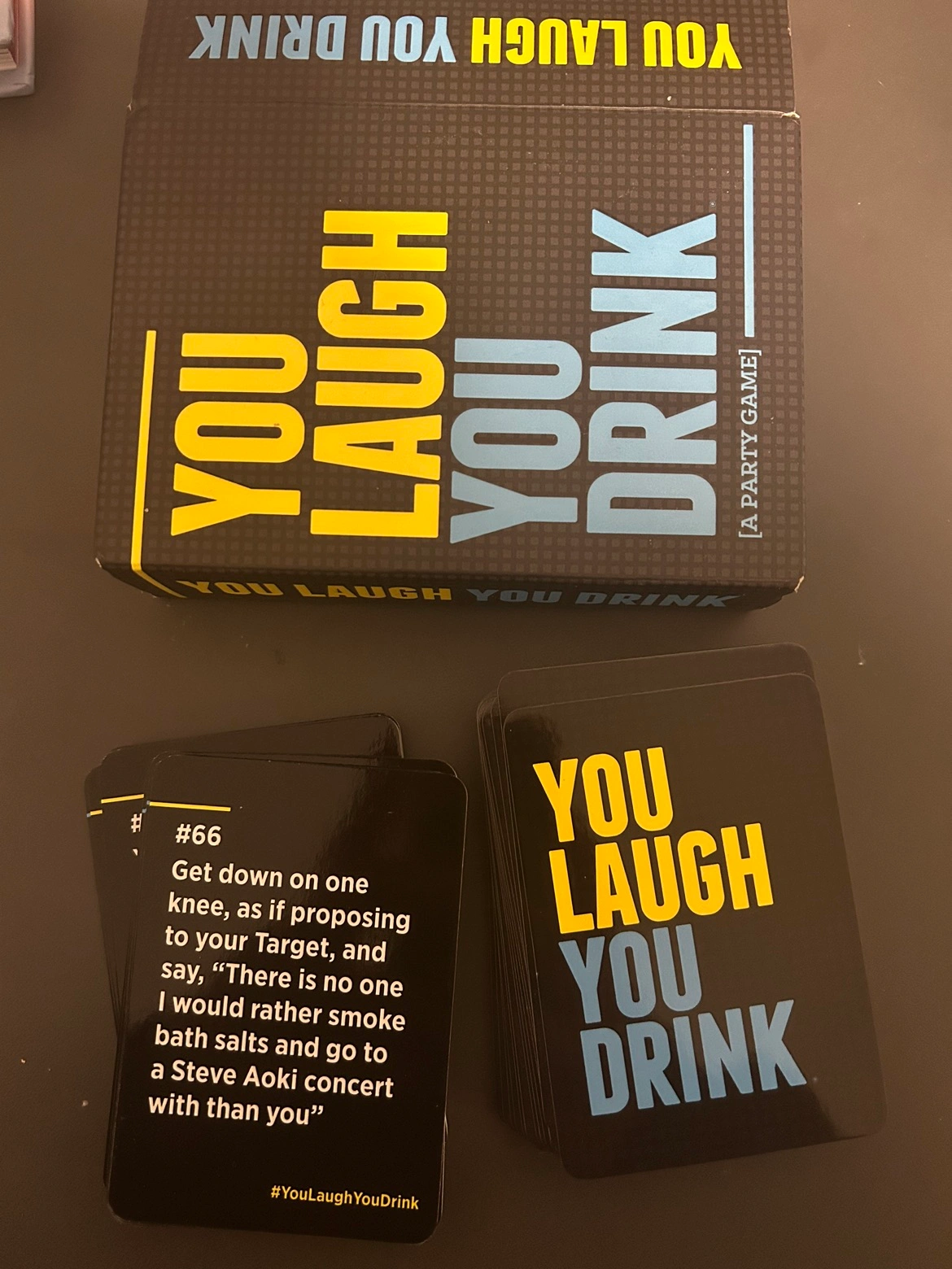 Buy & SellYOU LAUGH YOU DRINK DRINKING CARD GAMEYOU LAUGH YOU DRINK DRINKING CARD GAME$4YOU LAUGH YOU DRINK DRINKING CARD GAME COMPLETE SET BARELY USED GREAT FOR GIFTS PM OFFERSConditionLike newWHERE TO MEETBy Markham Rd/Progress AveView MapSELLERCamillaWoburn704 reviews0 chats·0 favorites·14 viewsSEND CHAT TO SELLERHi Camilla! I’m interested in your listing.Hi Camilla! I’m interested in your listing.Get the Karrot app to chatSign In to chat