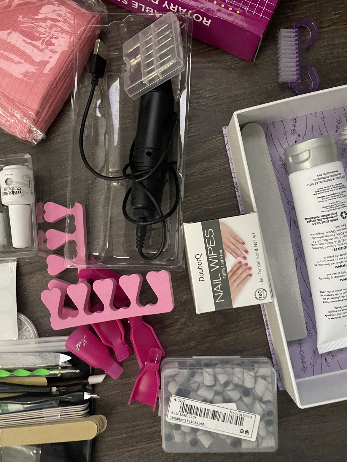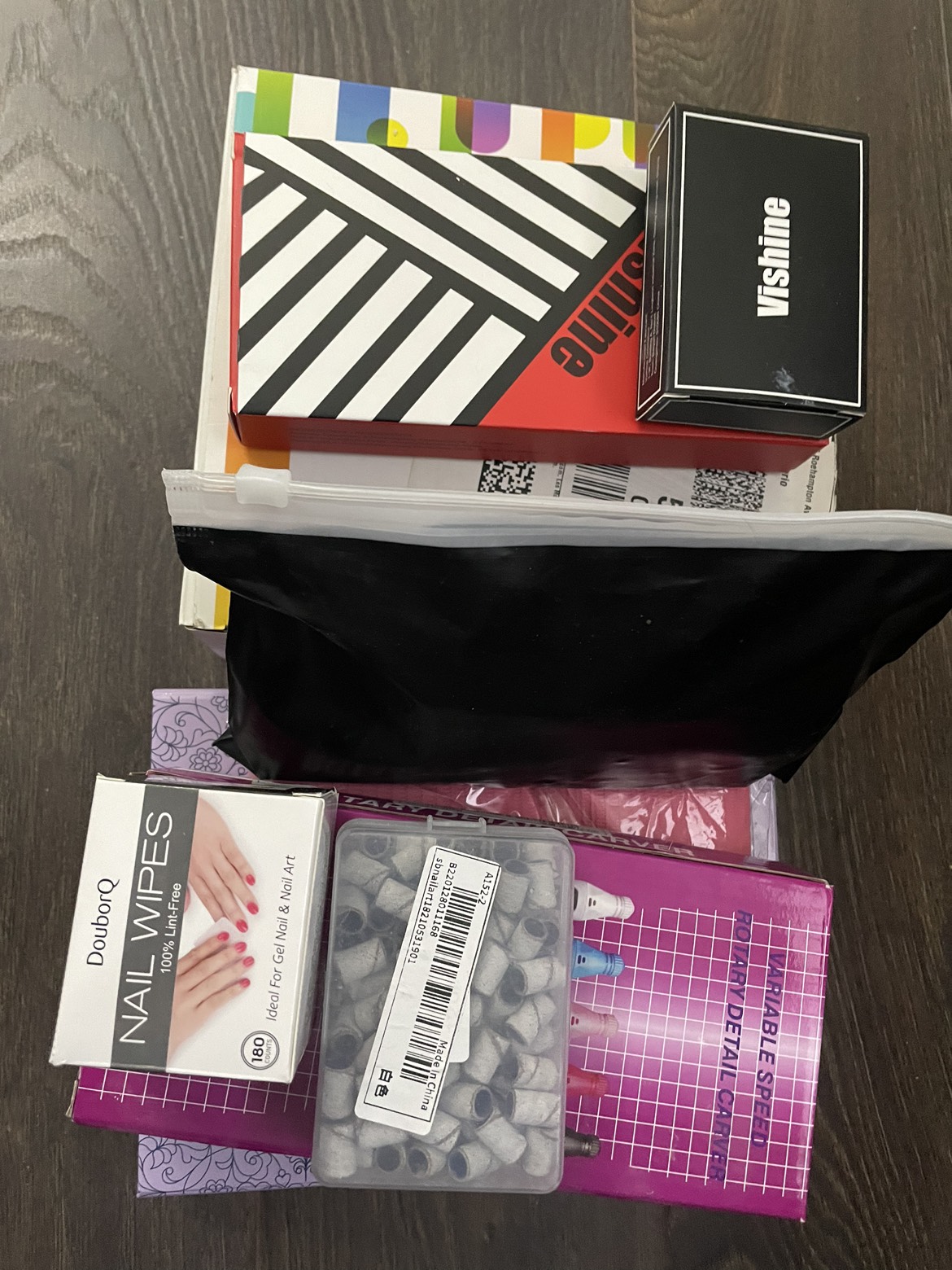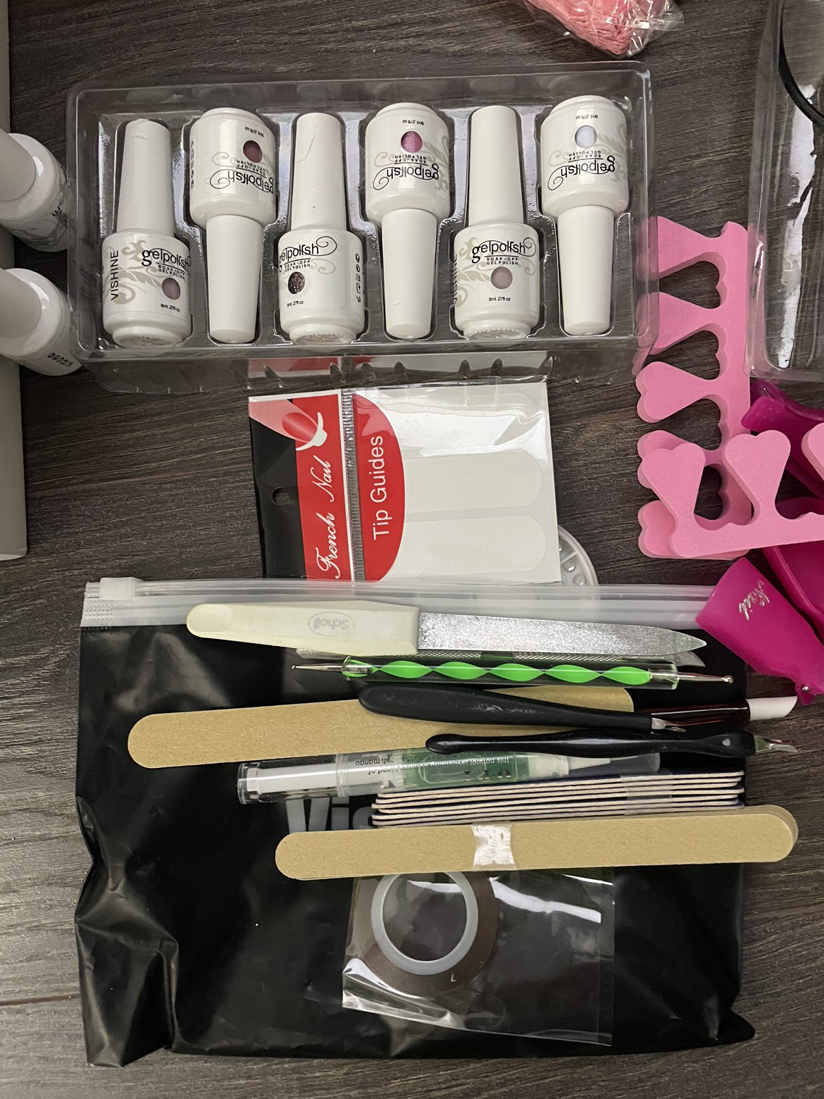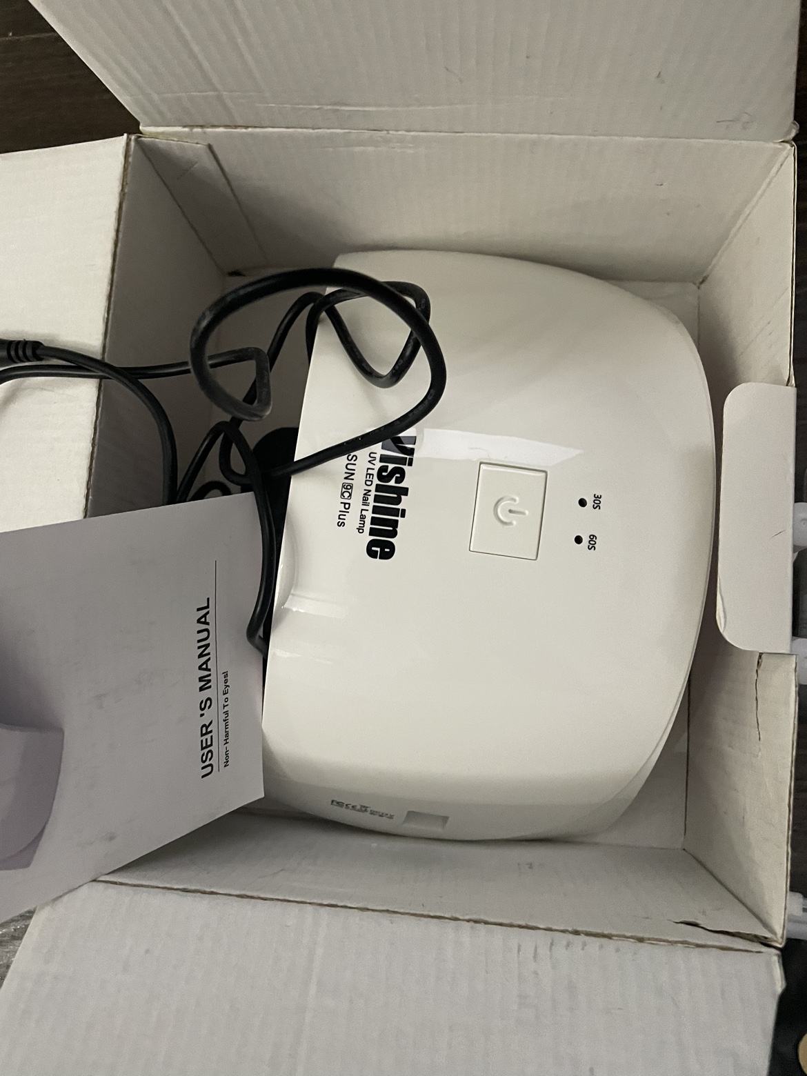 232Nail lamp uv light, manicure cleaning tool, 5 shellac nail paints, top and base coat, shellac removal tools, nail art tools. Used twice only.