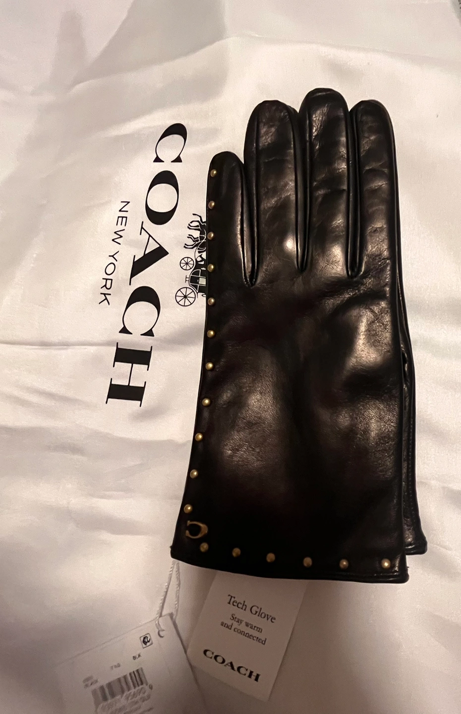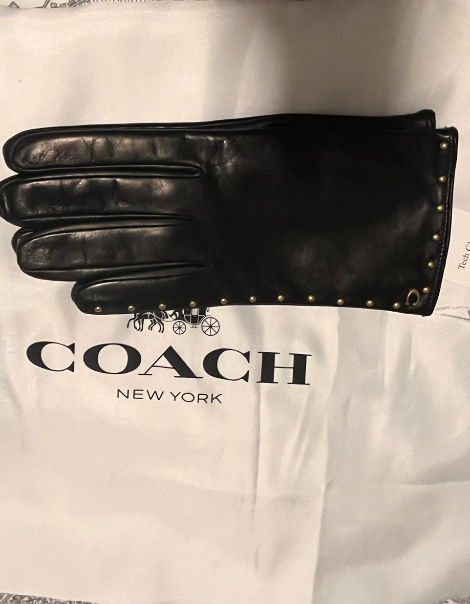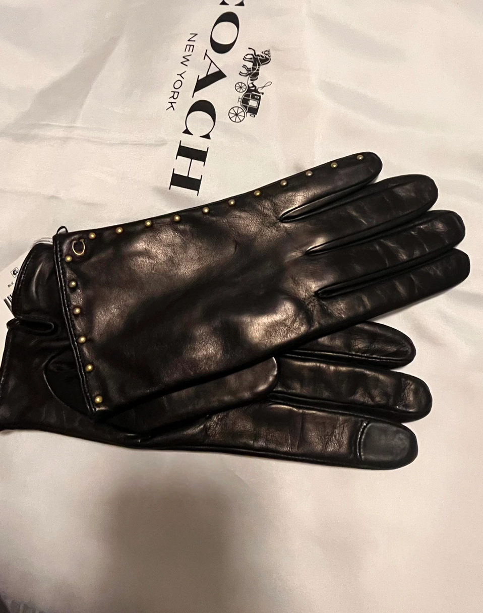 Smooth as butter Coach black leather gloves with gold rivets.