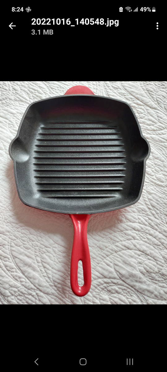 President Choice (12 inches) enameled red cast iron griddle, never used.