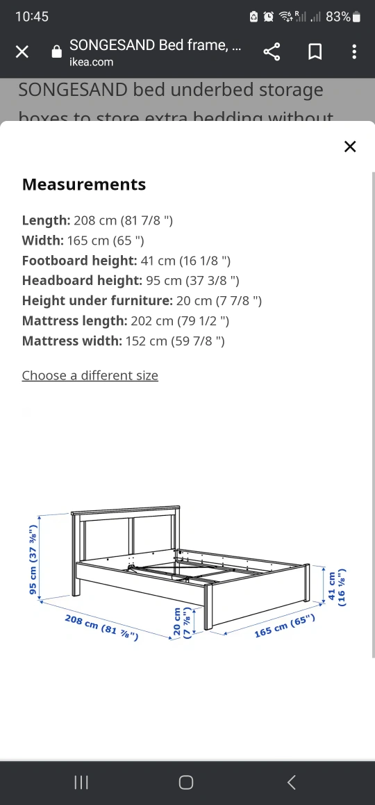 A sturdy bed frame with soft, profile edges and high legs. A classic shape that will last for many years. Add SONGESAND bed underbed storage boxes to store extra bedding without taking up more space.