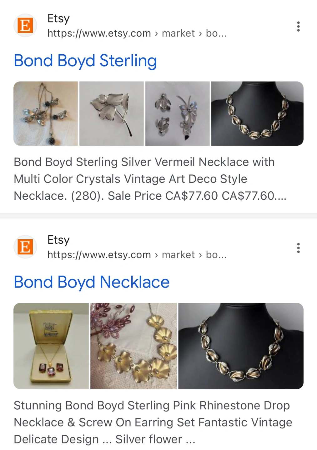 Vintage Bond Boyd Sterling signed gold tone necklace 💥