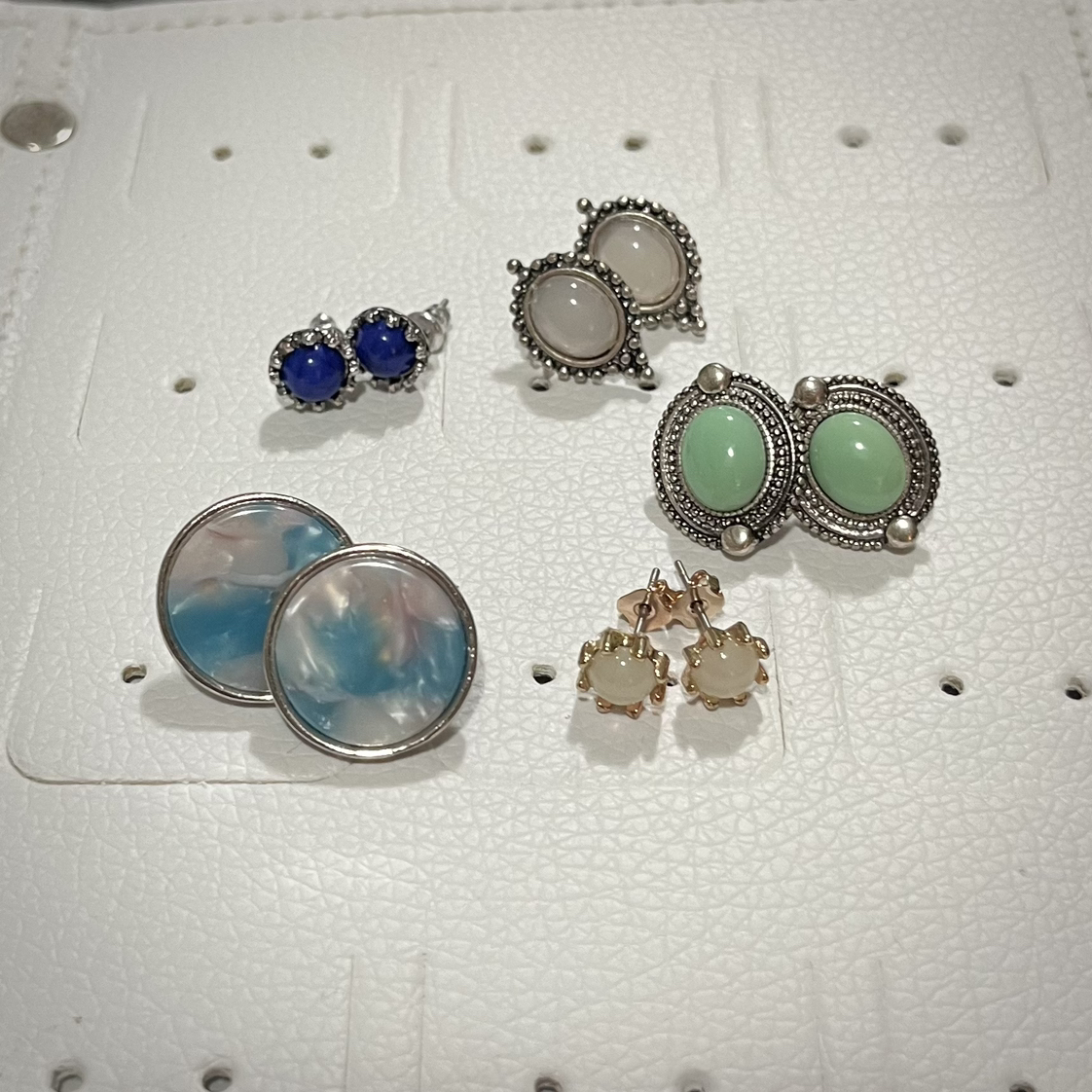 5 pairs of women’s vintage earrings, rarely worn as my lobes are stretched. Selling as they are not fit for my current aesthetic.
