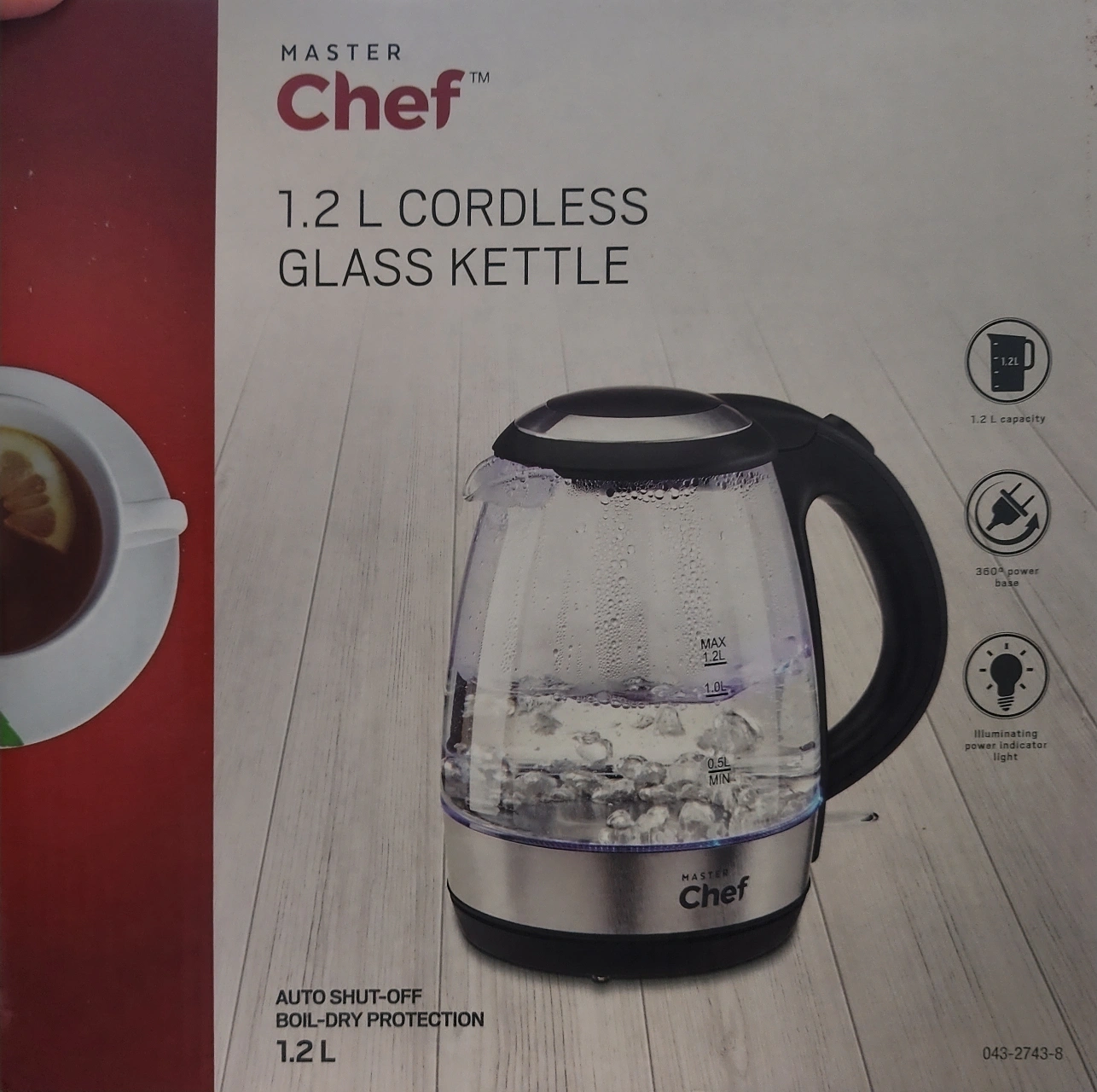 MASTER Chef Electric Glass Kettle is glass all the way around so you can watch your water as it boils