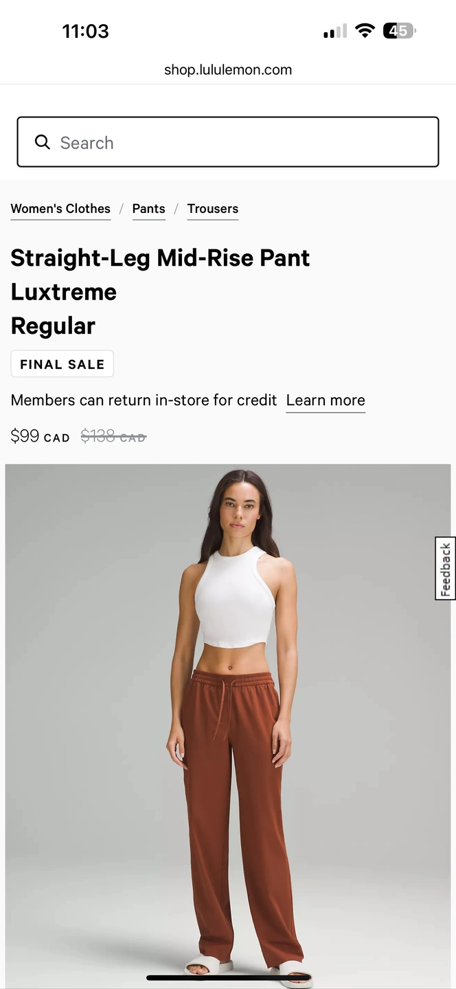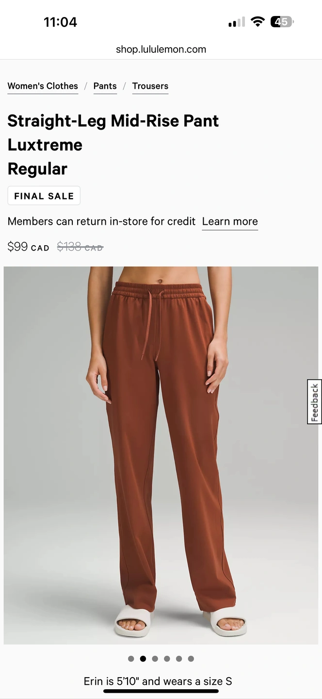 RFS: Wrong size. And cannot return. Bought for $109 + tax