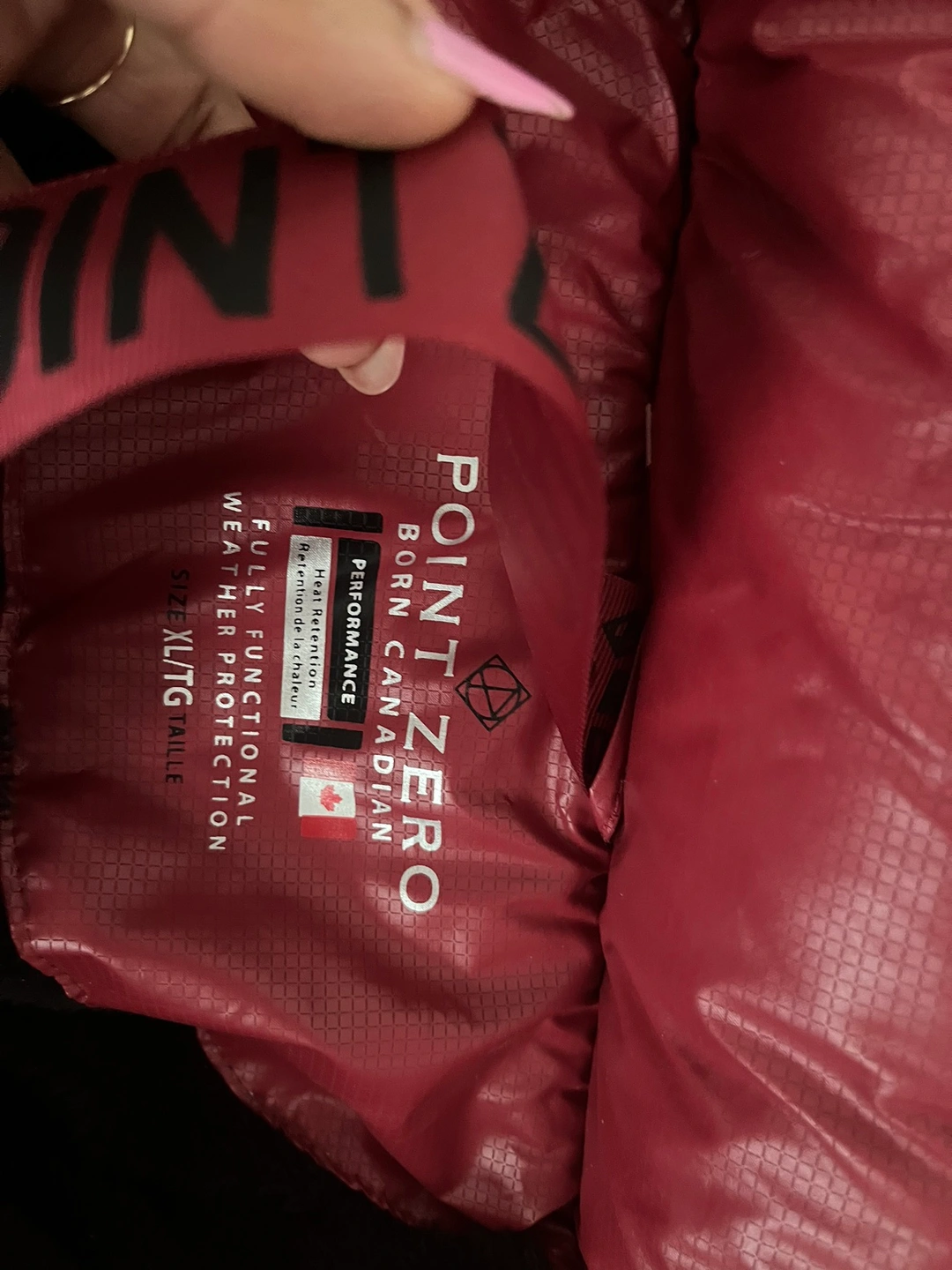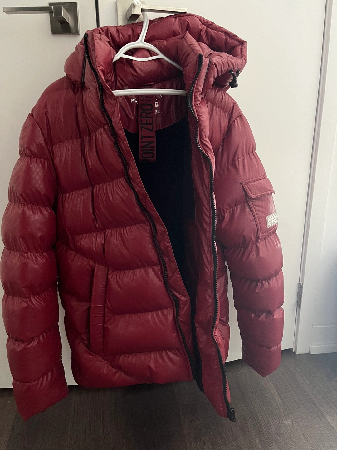 Point zero winter jacket brand new , works in -31•c . Premium outdoor winter tech. Pockets have zipper and so does hoodie. Hoodie is detachable.
